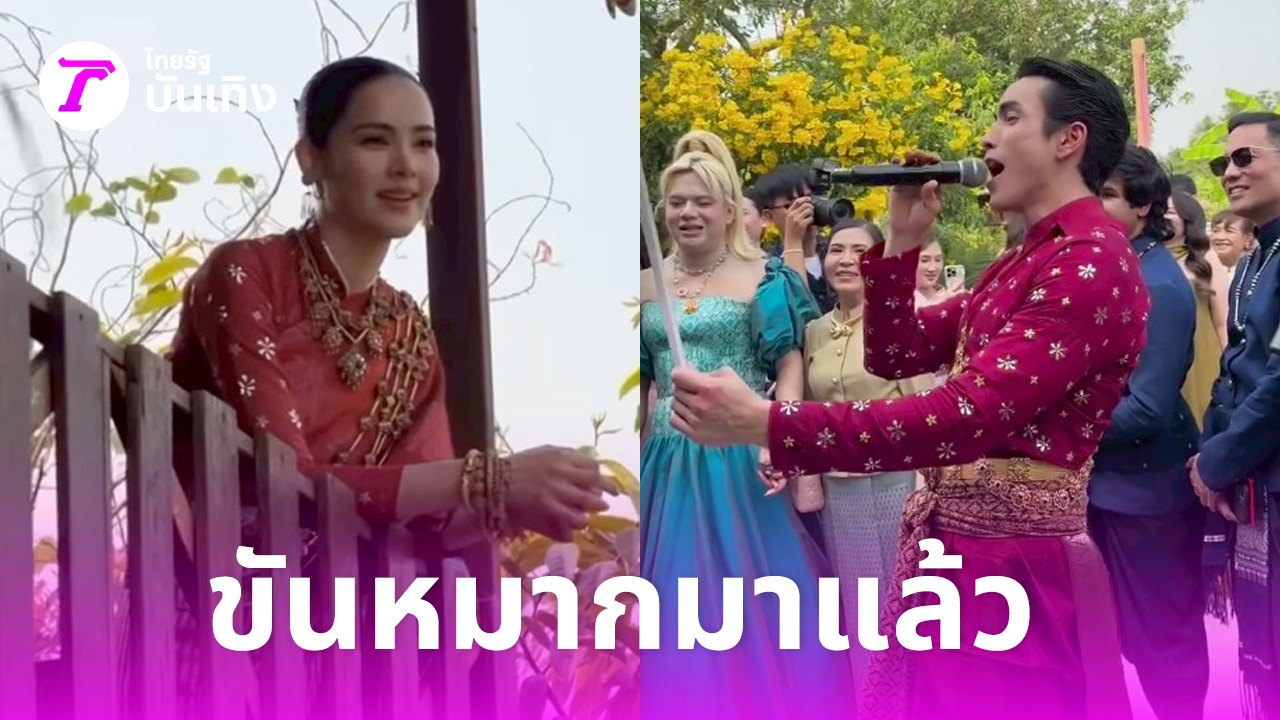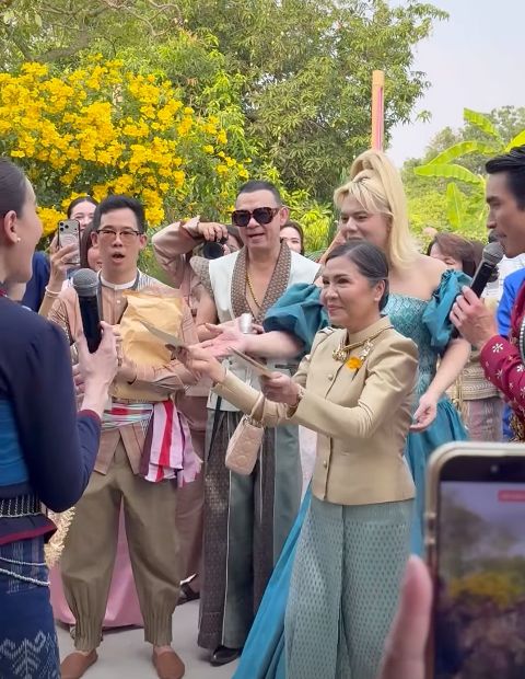 บรรยากาศภายในงานเต็มไปด้วยความสนุก อบอุ่น เป็นกันเอง เจ้าบ่าวได้ยกขันหมากสู่ขอเจ้าสาว โดยมี พี่เอ ศุภชัย ทำหน้าที่เป็นผู้ใหญ่ฝ่ายชาย มาสู่ขอ และ คิมเบอร์ลี่ เป็นเพื่อนเจ้าสาว กั้นประตูเงินประตูทอง พร้อมกับบอกเจ้าบ่าวว่า “หนักๆ หน่อยนะจ๊ะ” ด้าน หมาก ปริญ เป็นเพื่อนเจ้าบ่าว ร่วมแห่ขันหมาก