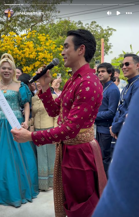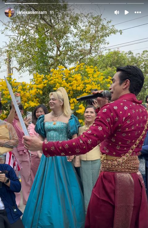 โดยในช่วงพิธีแห่ขันหมากเพื่อสู่ขอเจ้าสาว เพื่อนเจ้าสาวที่กั้นประตูเงินประตูทอง ได้ให้ ณเดชน์ อ่านประโยคบอกรักเมียเป็นภาษาอีสาน ให้ดังไปถึงเจ้าสาว ถึงจะเปิดประตูกั้นให้