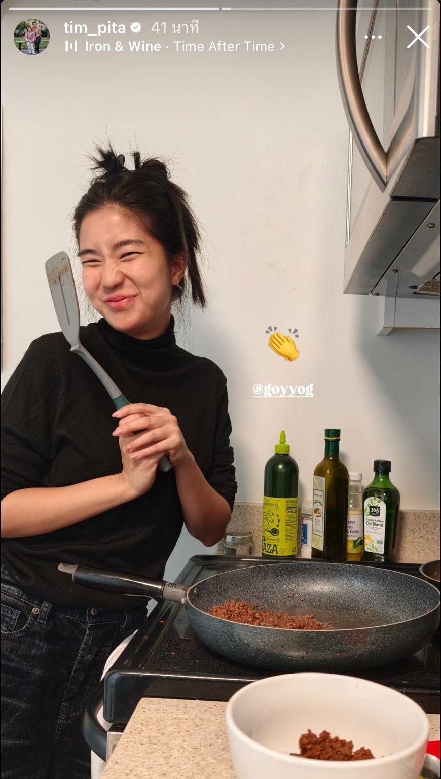 ด้านฝ่ายชายนั้นดูหวานสุดๆ ลงโมเมนต์น่ารักของแฟนสาวให้คนที่ติดตามได้อิจฉากันบ่อยๆ ล่าสุด ทิม ได้ลงภาพของ ก้อย ขณะอยู่ในครัว สวมบทบาทเป็นแม่ครัวหัวป่าก์ทำอาหารให้แฟนกิน รับรองมื้อนี้หวานแน่นอน!!