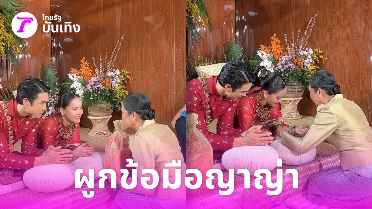 และอีกหนึ่งโมเมนต์ที่น่าประทับใจเช่นกัน คือช็อตที่ แม่แก้ว คุณแม่ของณเดชน์ ผูกข้อมือให้กับลูกชายสุดหล่อและลูกสะใภ้คนสวย พร้อมทั้งมอบของกำนัลเพื่อรับขวัญให้ญาญ่าด้วย ซึ่งแม่แก้วก็ได้โพสต์คลิปสุดประทับใจและเขียนข้อความถึงลูกสะใภ้คนนี้ว่า “แม่กับป๊าโยชิโอผูกเอาลูกสะใภ้แสนสวยรวยซูบาดย่าง ขอมอบของกำนัลรับขวัญเป็นกำลังใจ ผูกเอาลูกสะใภ้นำกันกับแม่ซูผู้ซูคนเด้อพี่น้อง…🩷🩷 @kugimiyas @urassayas #nyเขยนอร์เวย์สะใภ้ขอนแก่น #17เมษายน2026”