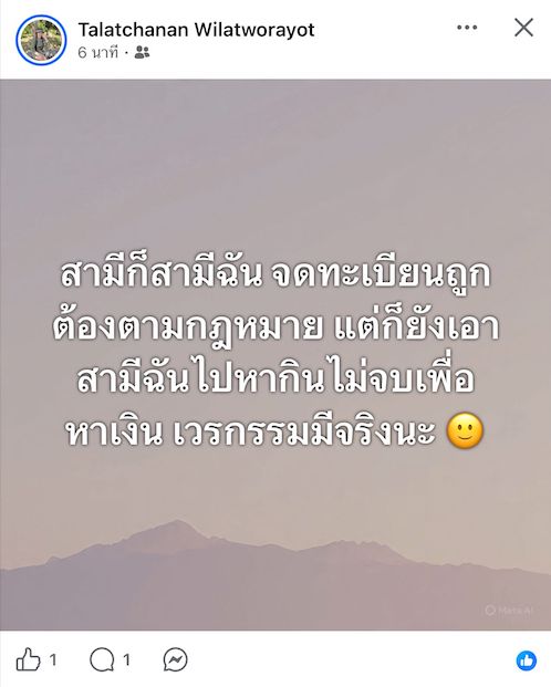 โดยไอซ์ได้โพสต์ข้อความว่า “สามีก็สามีฉัน จดทะเบียนถูกต้องตามกฎหมาย แต่ก็ยังเอาสามีฉันไปหากินไม่จบเพื่อหาเงิน เวรกรรมมีจริงนะ ”