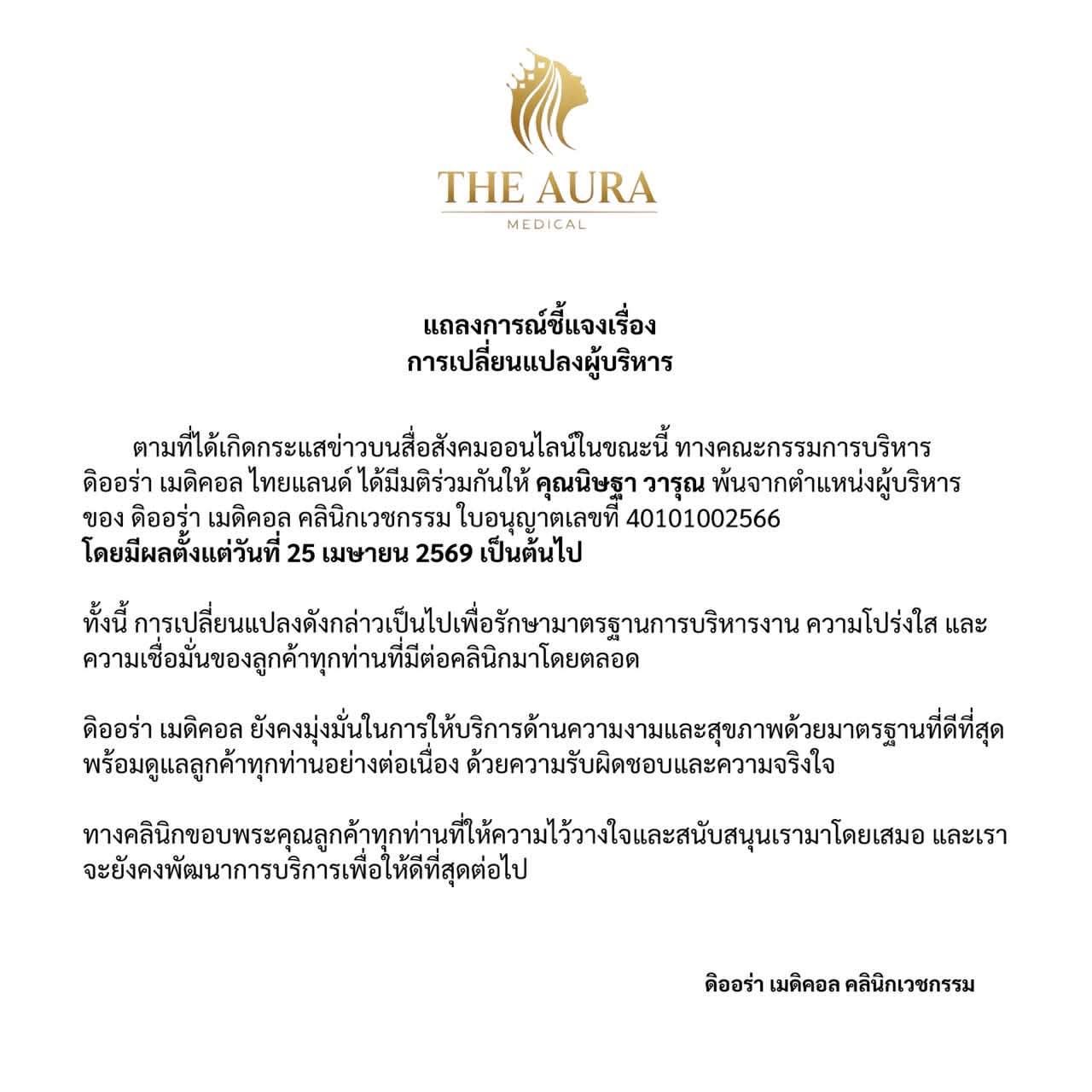 - จากดราม่าดังกล่าวทำให้ คลินิกเสริมความงามที่ โกกิ ได้เป็นหนึ่งในผู้บริหาร ได้โพสต์แถลงการณ์ประกาศปลด โกกิ นิษฐา วารุณ พ้นจากตำแหน่งผู้บริหาร โดยมีผลตั้งแต่วันที่ 25 เมษายน 2569 เป็นต้นไป เพื่อรักษามาตรฐานการบริหารงาน ความโปร่งใส และ ความเชื่อมั่นของลูกค้า