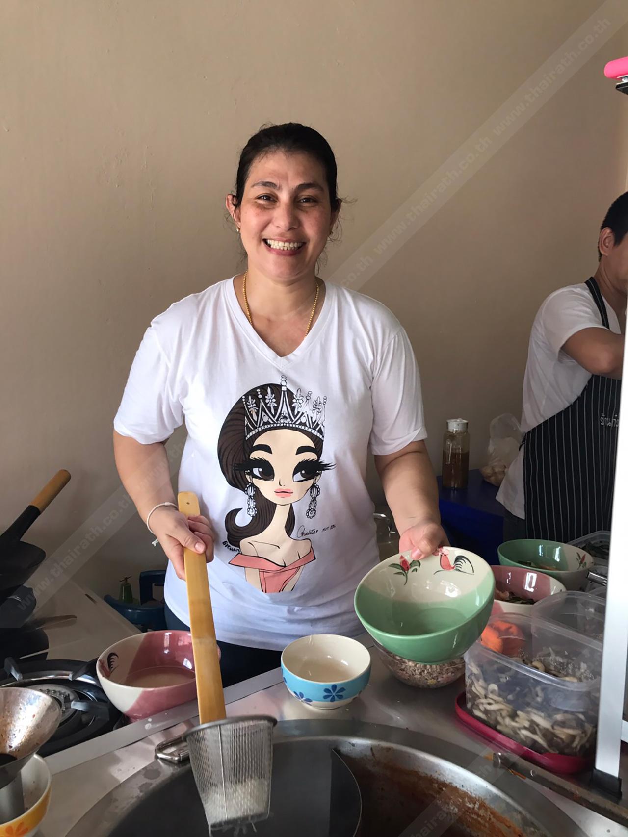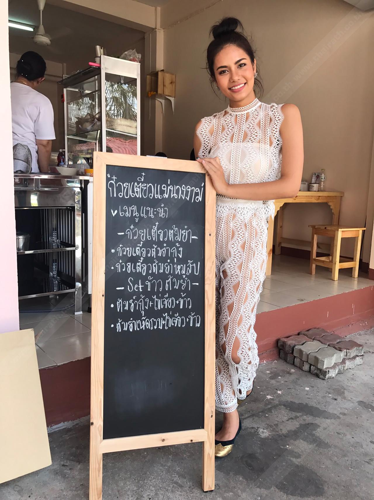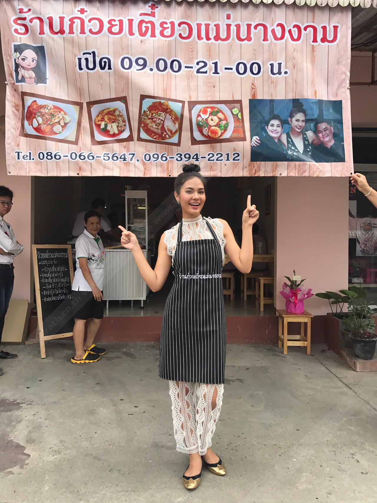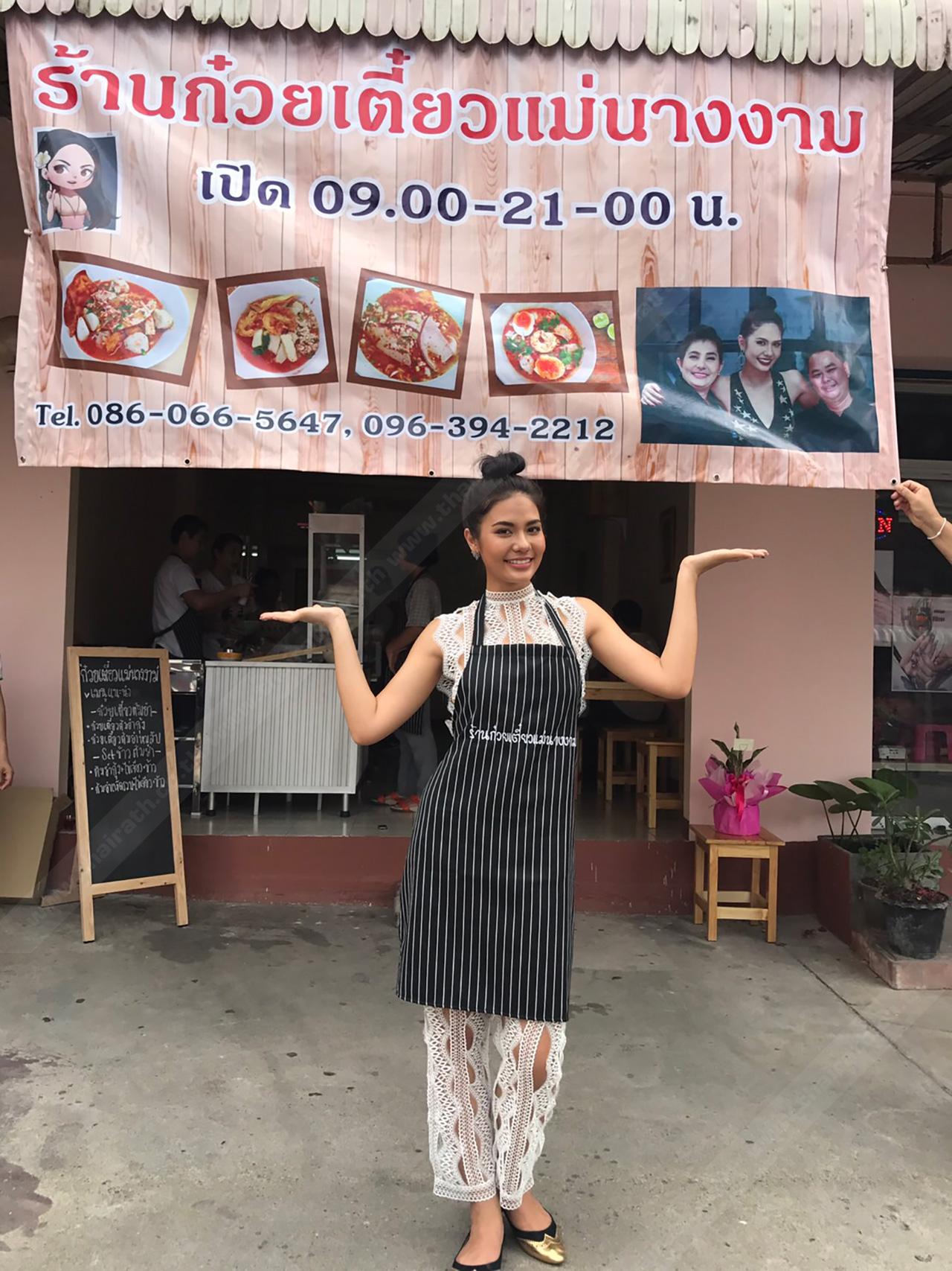 คุณแม่นางงามเปิดร้านทั้งที คุณลูกสาวสองสวย น้ำตาล ชลิตา และน้องพลอย ขนิษฐา ส่วนเสน่ห์ ก็มาช่วยเดินเสิร์ฟ ทำโน่น นี่ นั่น ช่วยคุณแม่กิ๊ฟอย่างขยันขันแข็ง เสิร์ฟช้าหน่อยรอได้เนอะ เพราะเสิร์ฟไปก็โดนแฟนๆ ขอถ่ายรูปด้วยตลอดๆ คุณแม่กิ๊ฟแจกยิ้มกระจาย ถ่อมตัวว่าเปิดร้านเล็กๆ ไม่ได้ใหญ่โตอะไร และบอกดังๆ เลยว่าก๋วยเตี๋ยวมีสูตรเด็ด กล้าเปิดร้านก็ต้องมั่นใจนะคะว่าแซ่บจริง ส่วนจะแซ่บหลายทะลุตับไตไส้พุงแค่ไหนนั้น ไม่อยากจะอวยเยอะ ไปลองกินกันเองได้แล้ว.