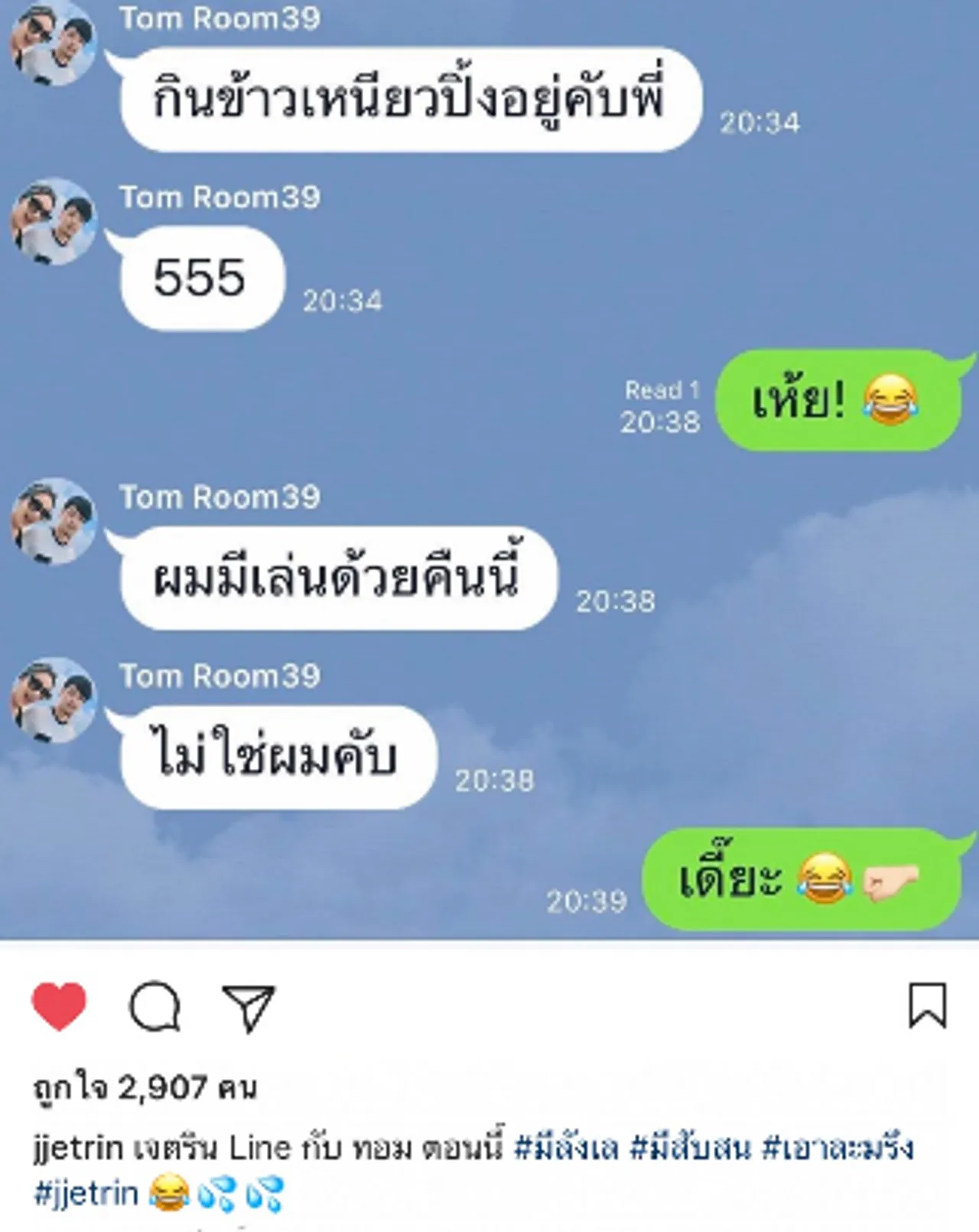 เจ เจตริน หวังฟลุ๊ก อดใจรอไม่ไหวว่าใครคือหน้ากากทุเรียน ไลน์หานักร้องรุ่นน้อง ทอม Room39 ว่าทำอะไรอยู่ ซึ่งอีกฝ่ายตอบกลับว่าอย่างไรไปดูกัน