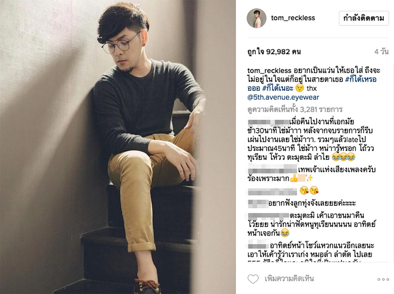 เริ่มต้นการตามติดชีวิตของนักร้องหนุ่มด้วยอินสตาแกรมส่วนตัวของหนุ่มทอมเอง ก็ได้พบว่า โพสต์ล่าสุดที่หนุ่มทอมลงเมื่อ 4 วันที่แล้ว ทั้งๆ ทีก่อนหน้านี้หนุ่มทอมก็จะมีลงรูปวันละรูป แต่ก่อนช่วงจะถึงวันชิงชัย กลับงดโพสต์โซเชียลซะอย่างนั้น งงเด้ งงเด้