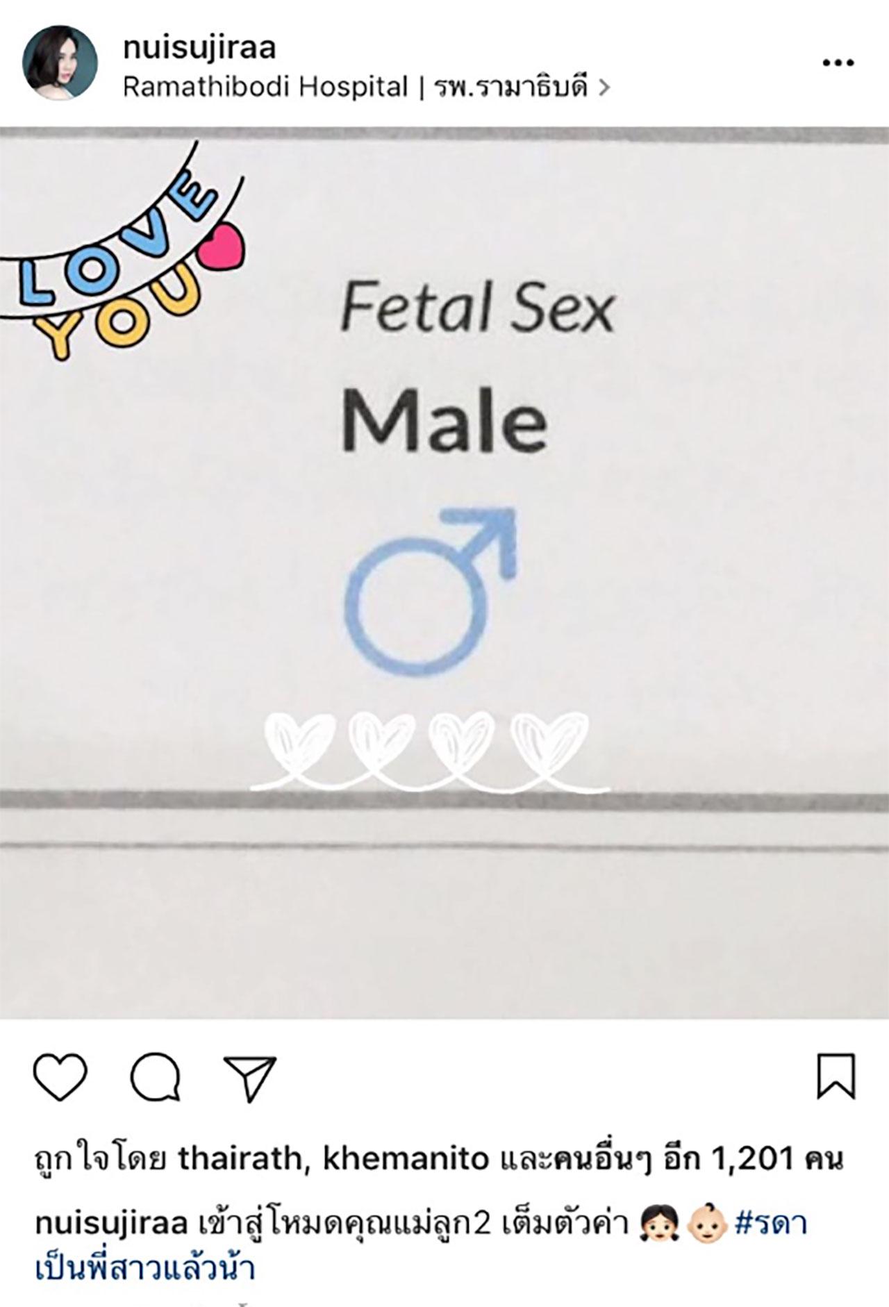 หลังจากที่ให้ วู้ดดี้ มิลินทจินดา เป่าท้องให้จนท้องสมใจหวังแล้ว งานนี้ก็อดใจรอว่าจะได้ลูกชายหรือลูกสาว ล่าสุด สาวนุ้ย สุจิรา ก็ได้โชว์ผลอัลตราซาวนด์ อวดชาวเน็ตกันหน่อยว่าได้ลูกชายสมใจแล้วจ้า...