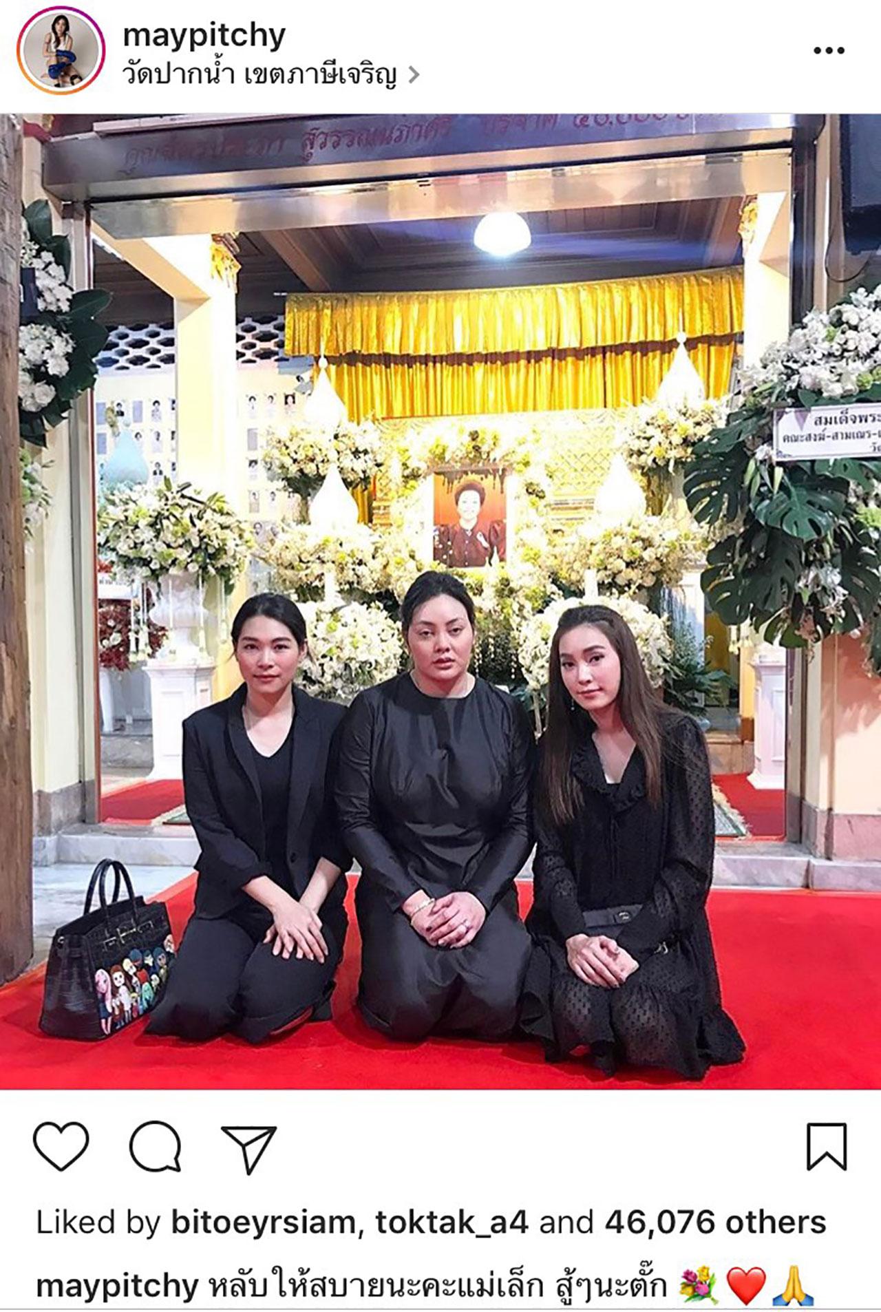 เมย์ พิชญ์นาฏ และ ปอ ณฐมน ไปร่วมงานศพของแม่เล็ก ธนาภา ในคืนที่ 3 ที่วัดปากน้ำภาษีเจริญ ด้าน ตั๊ก บงกช ที่อยู่ในความโศกเศร้า ดวงตายังคงบวมช้ำจากการร้องไห้อย่างหนัก...