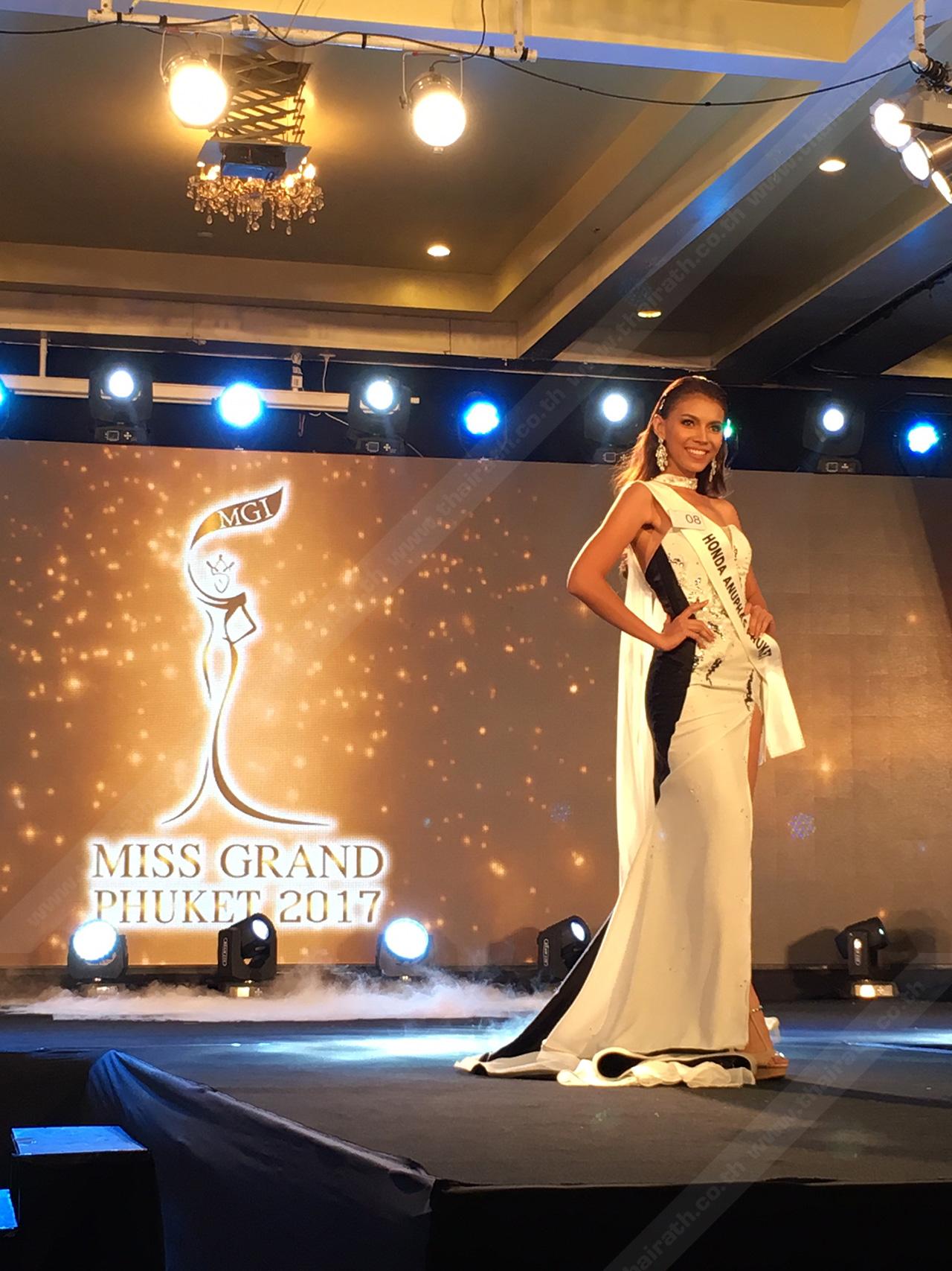 สาวงามทั้งหมดมาดมั่นสุดพลัง มาอวดอึ๋มโชว์สรีระในชุดว่ายน้ำรัดรูปสุดจี๊ดสีดำ พร้อมชุดราตรีที่สวยงามแตกต่างกันไป โดยมีนางงามรุ่นพี่ ชาลิสา อแมนด้า มิสแกรนด์ภูเก็ต 2016 และมิสทัวริซึ่ม เมโทรโพลิแทน อินเตอร์เนชั่นแนล Miss Tourism Metropolitan International 2016 มาร่วมชมเชียร์ให้กำลังใจนางงามรุ่นน้องด้วย และยังมี คิม ธีระศักดิ์ ผลงาม ผู้อำนวยการกองประกวดมิสแกรนด์ภูเก็ต เจ้าของธุรกิจร้านอาหารตู้กับข้าว และร้าน Dibuka ,ปอนด์ จิรภาส อภินันทาน ผู้จัดการกองประกวดมิสแกรนด์ภูเก็ต และณวัฒน์ อิสรไกรศีล ผู้อำนวยการกองมิสแกรนด์ไทยแลนด์ Miss Grand Thailand มาร่วมชมและควบคุมการประกวดด้วย