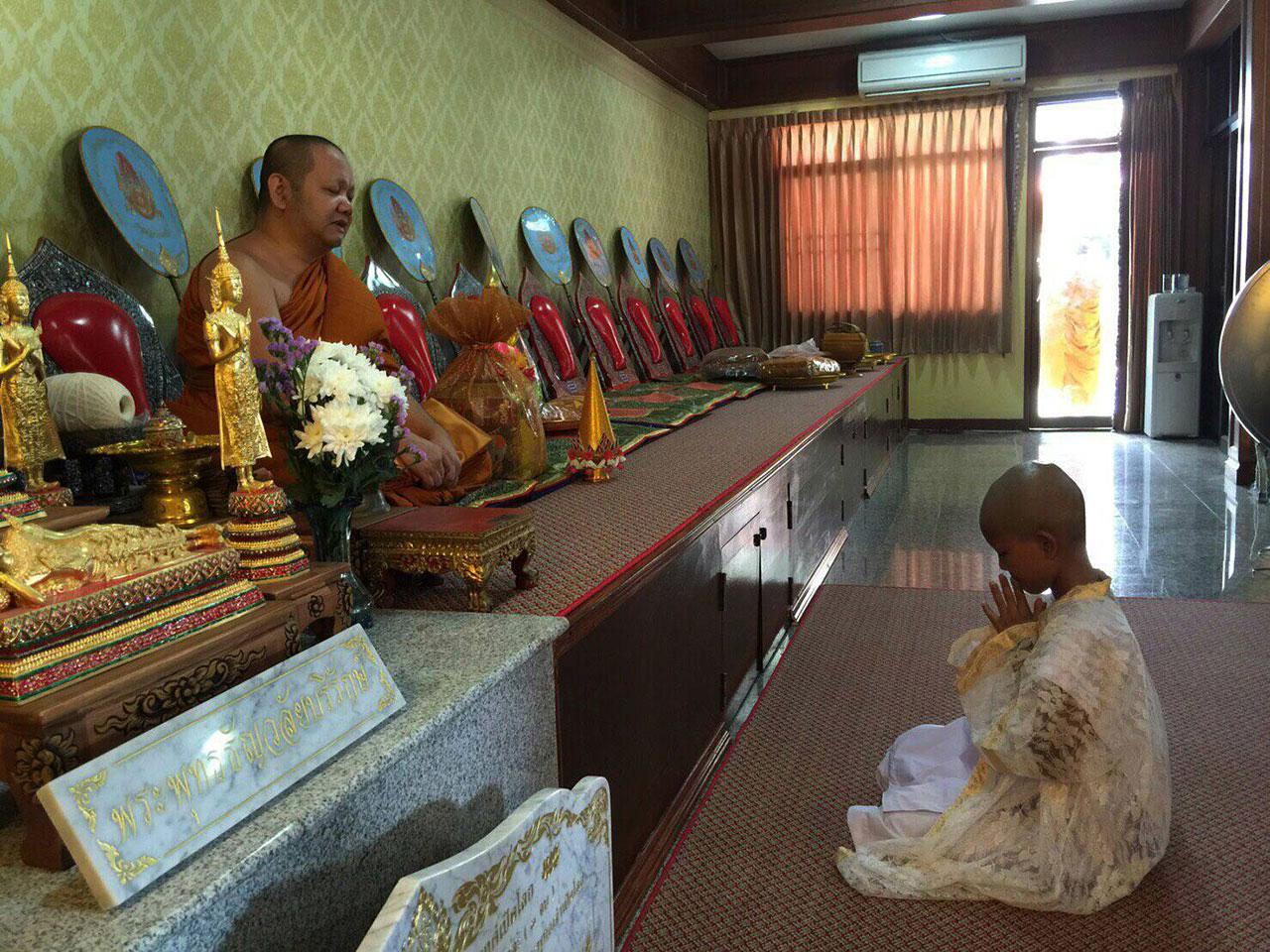 “น้องข้าวปั้นโกนหัวบวชไปแล้วค่ะ ที่วัดจักรวรรดิฯ ซึ่งเป็นผลผลิตของโครงการปลูกต้นกล้า ยาตราพุทธภูมิ รุ่นที่ 1 หลังกลับจากบวชเณรที่อินเดียแล้ว ก็ใฝ่ฝันอยากบวชเรื่อยมา จนคุณพ่อ-คุณแม่ใจอ่อน ยอมให้ออกจากโรงเรียนและเข้าบวชเรียน โดยศึกษาบาลีที่วัดจักรวรรดิฯ ซึ่งพระมหาธนเดชเป็นผู้แนะนำ และน้องข้าวปั้นตั้งใจจะบวชตลอดชีวิต แต่คุณพ่อคุณแม่บอกว่าไม่แน่ใจเพราะน้องยังเล็ก ต้องดูไปก่อน