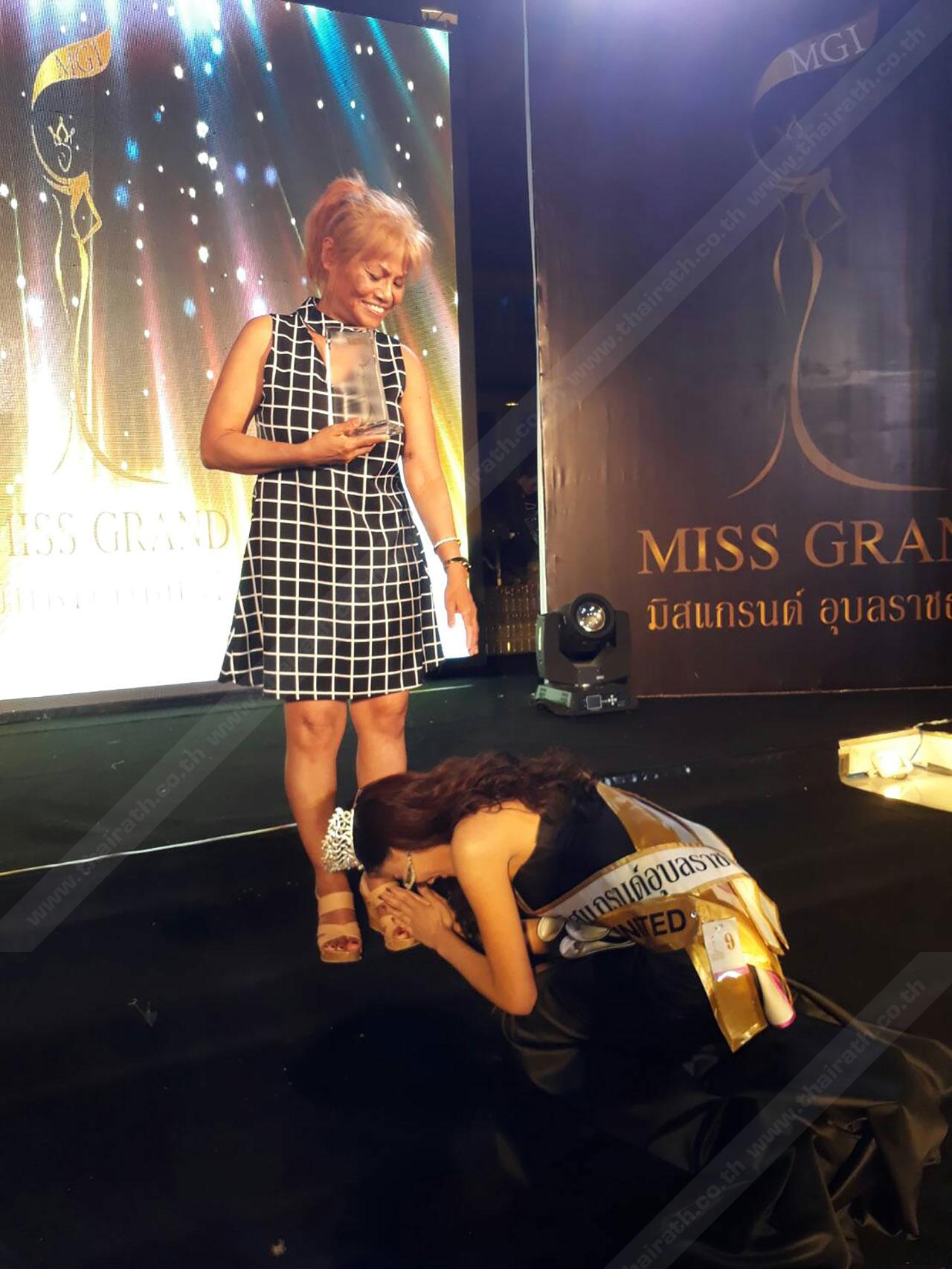 ส้ม สุภัสสร สาวใสอายุ 26 ปี ผู้ชนะมิสแกรนด์อุบลราชธานี ดีใจสุดๆ ก้มลงกราบแม่ที่คว้าที่ 1 มาได้ กล่าวอย่างยิ้มแย้มด้วยภาษาท้องถิ่น "เพิ่งประกวดเวทีมิสแกรนด์อุบลราชธานีเป็นเวทีแรก การประกวดครั้งนี้ให้บทเรียนกับหนูมากๆ ทั้งเรื่องความอดทน ความตั้งใจ มุมาะนพยายาม และให้มิตรภาพที่ดีกับเพื่อนๆ นางงามและพี่ๆ ทีมกองมิสแกรนด์อุบลราชธานีด้วยค่ะ หนูภูมิใจที่เกิดเป็นคนอีสานที่อุบลราชธานี ภูมิใจเรื่องภาษา ภูมิใจในทุกๆ อย่างที่เป็นอีสาน เพราะคนอีสานเป็นคนที่ชอบสนุก ใครอยู่ด้วยแล้วก็สบายใจ และเพราะความเป็นอีสานนี่แหละ ที่ทำให้หนูได้เป็นมิสแกรนด์อุบลราชธานี".
