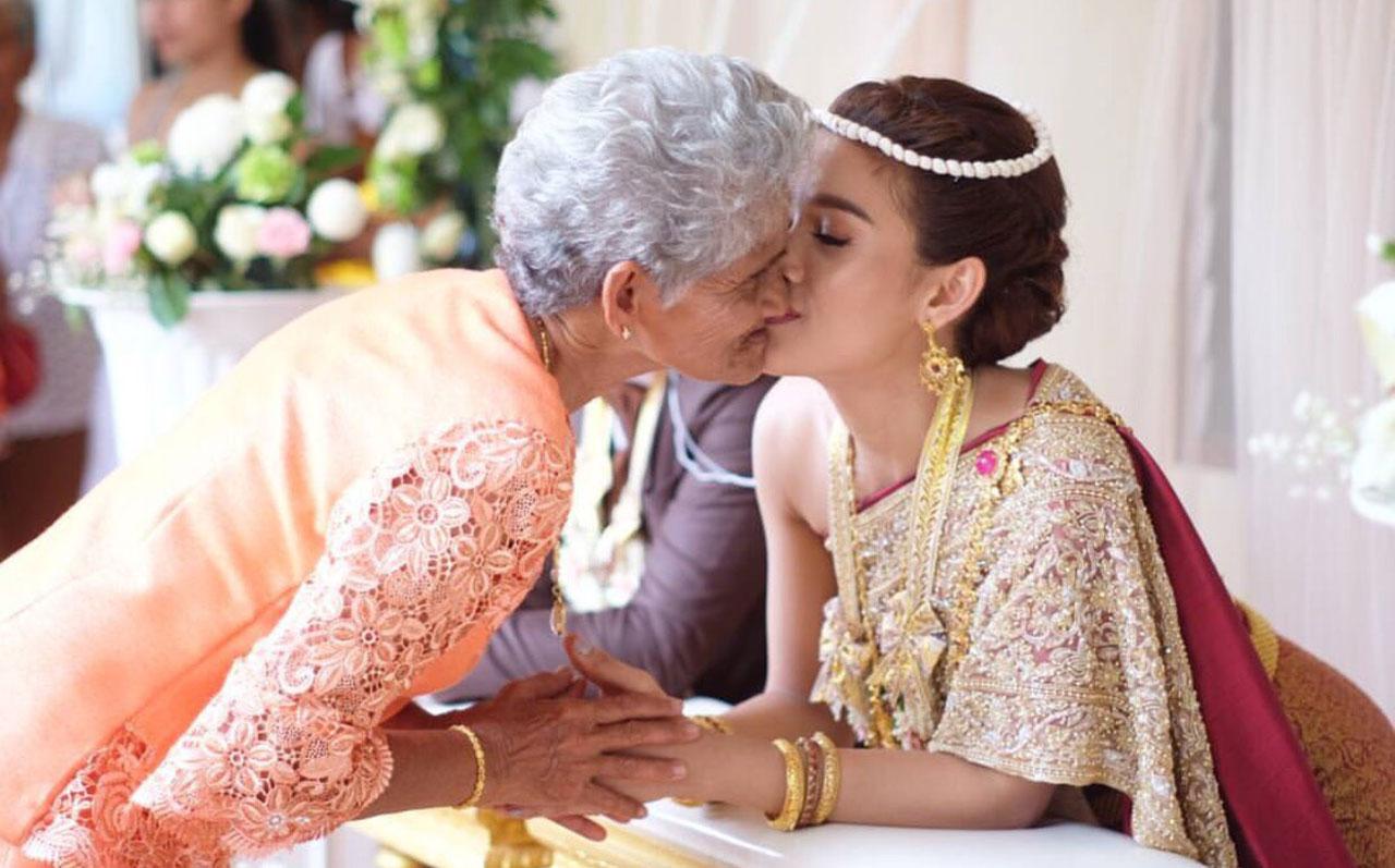 โดยช่วงเที่ยงมีพิธีรดน้ำสังข์ และช่วงบ่ายทำพิธีส่งตัวเข้าหออย่างเรียบง่ายอบอุ่น ที่บ้านของฝ่ายหญิง จ.สงขลา โดยมีเพียงครอบครัวและญาติสนิท รวมทั้งเพื่อนพ้องในวงการ อาทิ เป็ด เชิญยิ้ม, เบนซ์ พรชิตา, เป๊บ ณพสิทธิ์, คิง ก่อนบ่ายฯ ร่วมยินดี
