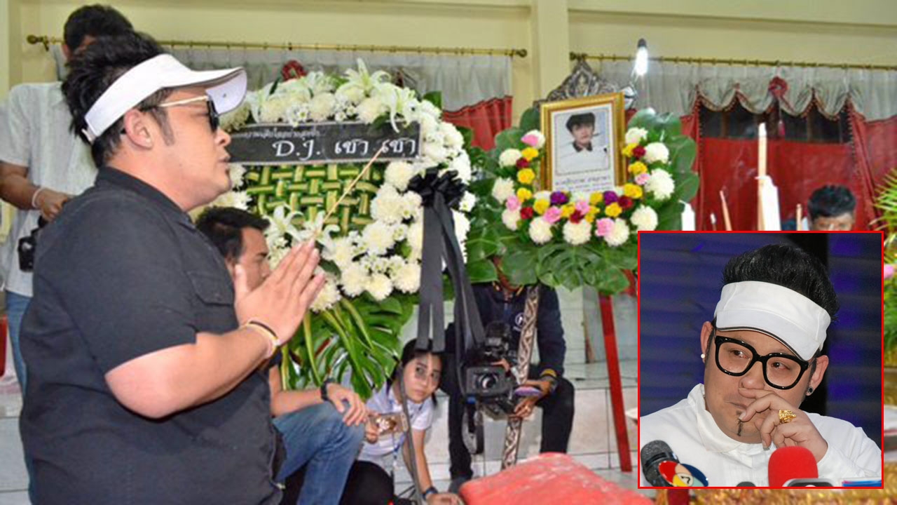 ดีเจเชาเชา-ชวลิต ศรีมั่นคงธรรม ไหว้หน้าศพนายจิรภาษ ธงอาษา ที่เสียชีวิตจากอุบัติเหตุขี่ จยย.เฉี่ยวชนกับรถเก๋งของดีเจเชาเชา ขณะ มาเป็นเจ้าภาพงานศพที่วัดบึงทองหลาง โดยก่อนหน้าได้เปิดแถลงข้อเท็จจริง รับเป็นเหตุสุดวิสัย ทุกอย่างเกิดขึ้นเร็วมาก ยันดูแลค่าใช้จ่ายทั้ง ที่ รพ.และค่าใช้จ่าย ในงานศพหลังจากนี้จะ บวชให้คนตาย 15 วัน.