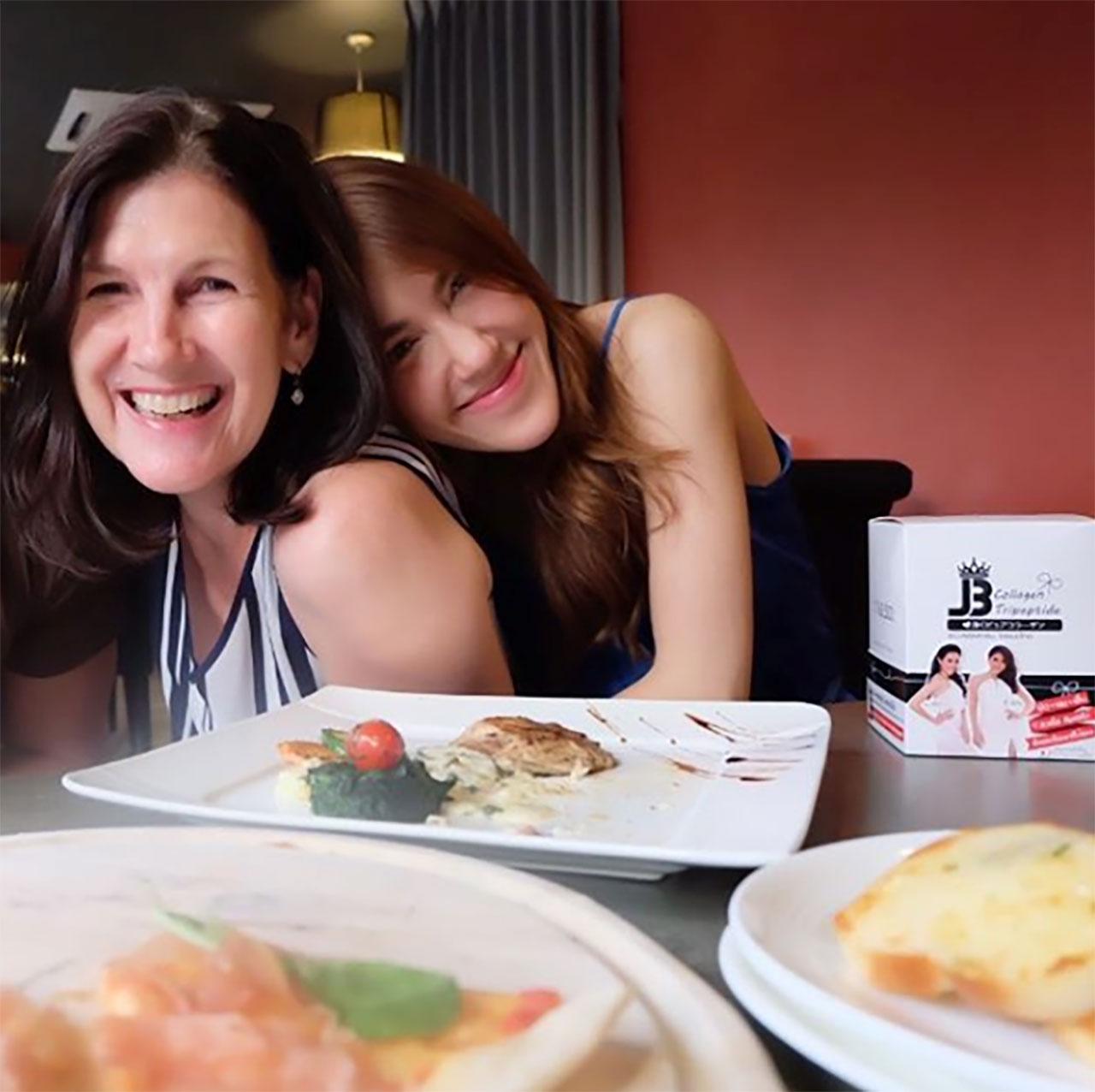 “แล้วก็มี JB Collagen คอลลาเจนอะค่ะ เป็นอีกธุรกิจหนึ่ง ที่มาอันนี้อะค่ะคือ อาหารเสริมคอลลาเจน จิ๊บแบบคือก่อนหน้านี้หน้าไปใช้ยาที่แบบมันแรงแก้แพ้อะไรแบบเนี้ย แล้วทำให้หน้าเราบางมากเป็นผดเยอะมาก เป็นสิว เหมือนแบบหน้าอ่อนแอไปเลย จนมารักษาอยู่นานมากอะค่ะ จนได้มาทานคอลลาเจน จริงๆ ก็คือเหมือนที่บอกมันคือภายในหรือการทำให้ผิวเรามันแข็งแรงขึ้นอะค่ะ คือตัวคอลลาเจนนี้มันทำให้จิ๊บ จากที่จิ๊บเคยเป็นอาทิตย์เว้นอาทิตย์ มันเลื่อนเวลาไปเรื่อยๆ อะ แต่มันคือใช้เวลาในการรักษาหน้าของจิ๊บแทบโคม่าเลยอะ”