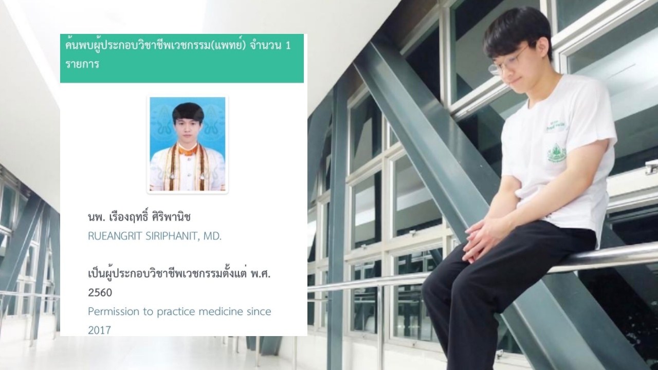 ซึ่งล่าสุดริท โชว์ภาพที่บ่งบอกสถานะแพทย์ ว่า นพ. เรืองฤทธิ์ ศิริพานิช เป็นผู้ประกอบวิชาชีพเวชกรรมต้ังแต่ พ.ศ. 2560