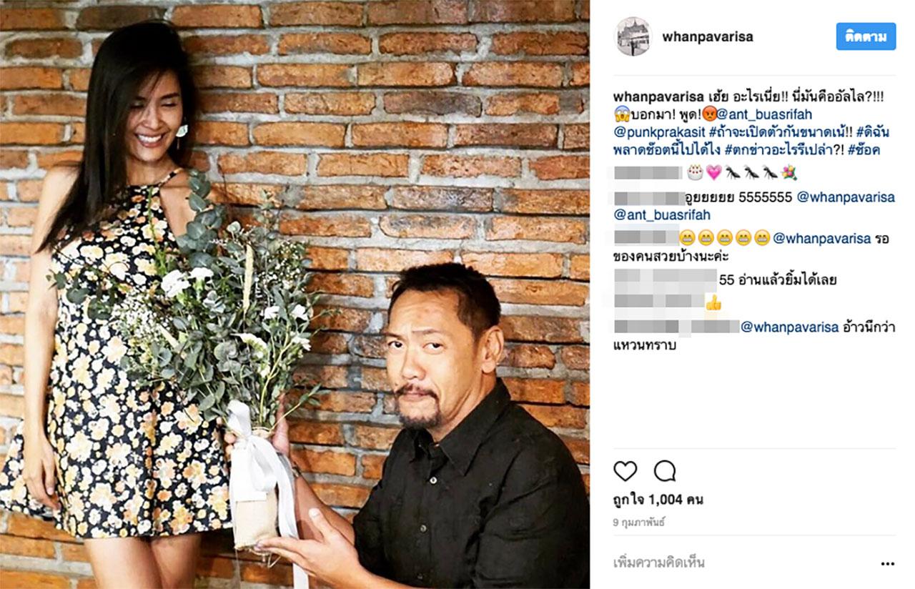 ทำเอาหลายคนแอบตื่นเต้นกันยกใหญ่ เมื่อแหวนแหวน ปวริศา ลงภาพของคาสโนว่าตัวพ่ออย่าง ปั๋ง ประกาศิต โบสุวรรณ คุกเข่ามอบช่อดอกไม้ให้แฟนสาว พร้อมแคปชั่นชวนให้สงสัยว่าหนุ่มปั๋งขอแฟนสาวแต่งงานแล้วไม่บอกเธอหรืออย่างไร