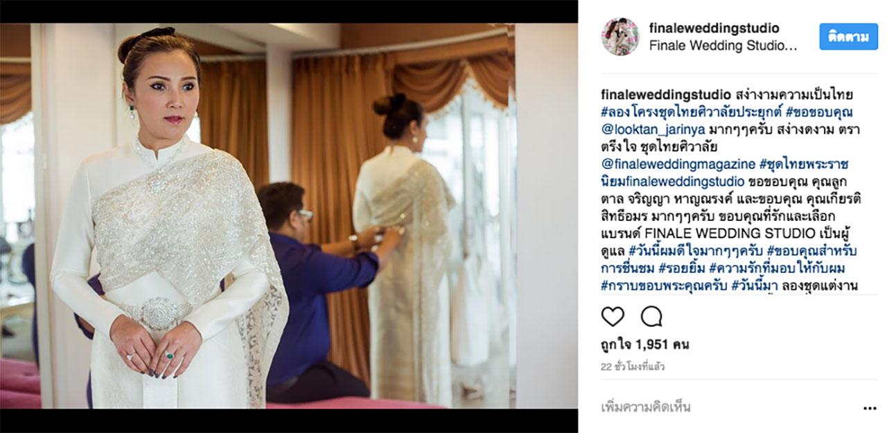 “#ผมกราบขอบพระคุณ ด้วยหัวใจ @looktan_jarinya รักมั่นคงยืนยงตราบนิรันดร์ ขอขอบคุณ คุณลูกตาล จริญญา หาญณรงค์ และขอบคุณ คุณเกียรติ สิทธีอมร มากๆๆครับ ขอบคุณที่รักและเลือกแบรนด์ FINALE WEDDING STUDIO เป็นผู้ดูแล