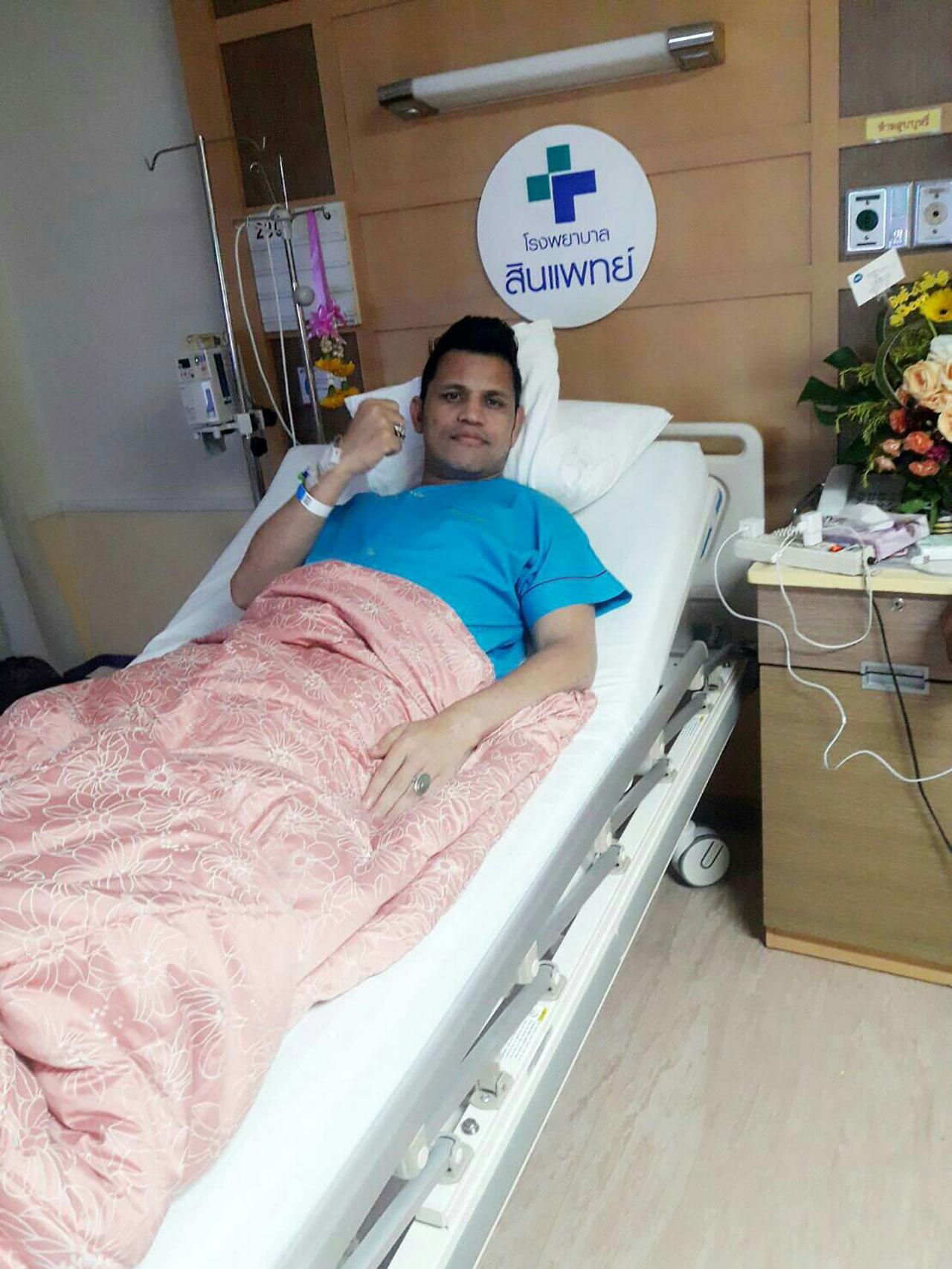 ถ้าต้องผ่าตัดก็ต้องมาตัดสินใจอีกครั้งว่าจะผ่าตัดที่โรงพยาบาลไหน แต่ตอนนี้ก็ให้คุณหมอรักษาไปตามอาการครับ ผมต้องขอขอบคุณทุกๆ คนทั้งผู้ใหญ่ เพื่อนๆ น้องๆ ในวงการ และพี่ๆ สื่อมวลชน รวมถึงแฟนๆ ที่คอยส่งกำลังใจมาให้ตลอด ถ้ามีความคืบหน้าเพิ่มเติม ผมจะรีบแจ้งทันทีครับ".