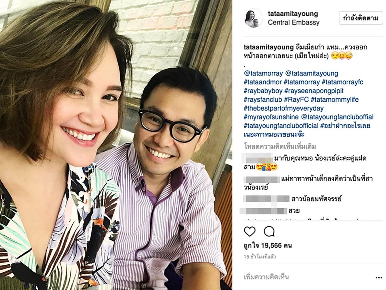 งานนี้นอกแฟนๆ จะกรี๊ดกร๊าดกับลุคใหม่ของสาวทาทา พี่หมอ สามีสุดที่รักของเธอ ก็ดูจะเห่อกับผมทรงใหม่ของภรรยาสาวไม่น้อยเช่นกัน โดยสาวทาทาได้โพสต์รูปคู่กับพี่หมอพร้อมแคปชั่นแซวสามีของตัวเองว่า “ลืมเมียเก่า แหม...ควงออกหน้าออกตาเลยนะ (เมียใหม่อ่ะ)”