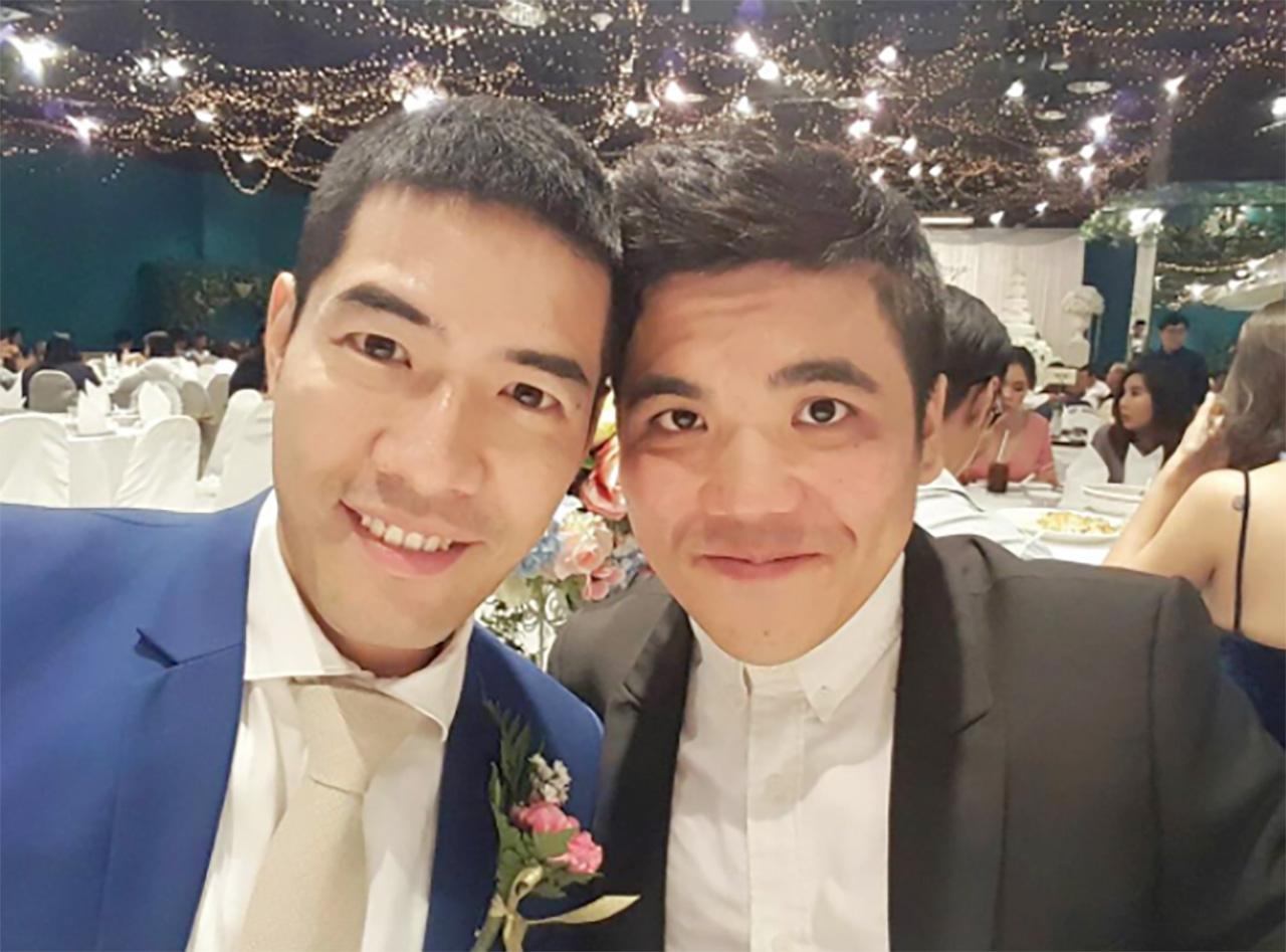 “ผมคุยกับกุ๊บกิ๊บ ให้เค้าหาแฟนให้ แล้วกิ๊บก็แนะนำมาคนนี้ เราเห็นแล้วคิดว่าไม่ใช่หรอก เพราะแต่ละรูปในไอจี เค้าดูเหมือนเซเลบมาก แต่งตัวจัดเต็ม แต่เลื่อนไปเจอคลิปเค้ากินอาหารหมา เลยคิดว่าตลกดี สุดท้ายก็นัดเจอกันที่ร้านอาหารที่ทองหล่อ ผมขับรถไปหาเลย