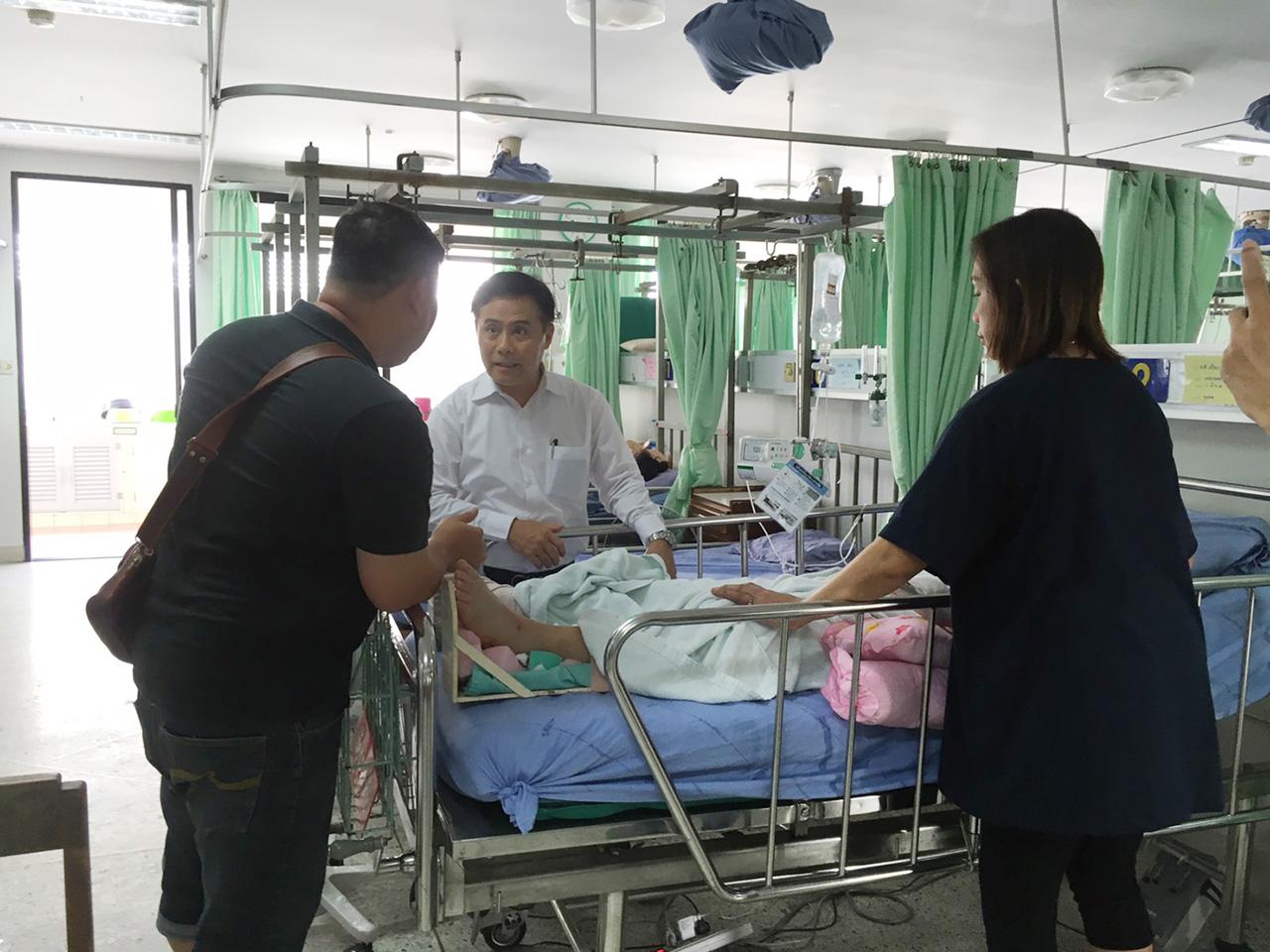 นายแพทย์จุมพล ฟูเจริญ รองผู้อำนวยการโรงพยาบาลประจวบคีรีขันธ์ ด้านบริการปฐมภูมิและทุติยภูมิ แพทย์สาขาศัลยศาสตร์ออร์โธปิดิคส์ กล่าวว่า ภายหลังจากที่คนไข้ถูกส่งตัวจากโรงพยาบาลทับสะแก มายังโรงพยาบาลประจวบคีรีขันธ์ จากสาเหตุอุบัติเหตุรถชนต้นไม้ ที่หอผู้ป่วยศัลยกรรมกระดูกและข้อ อาคารผู้ป่วยใน
