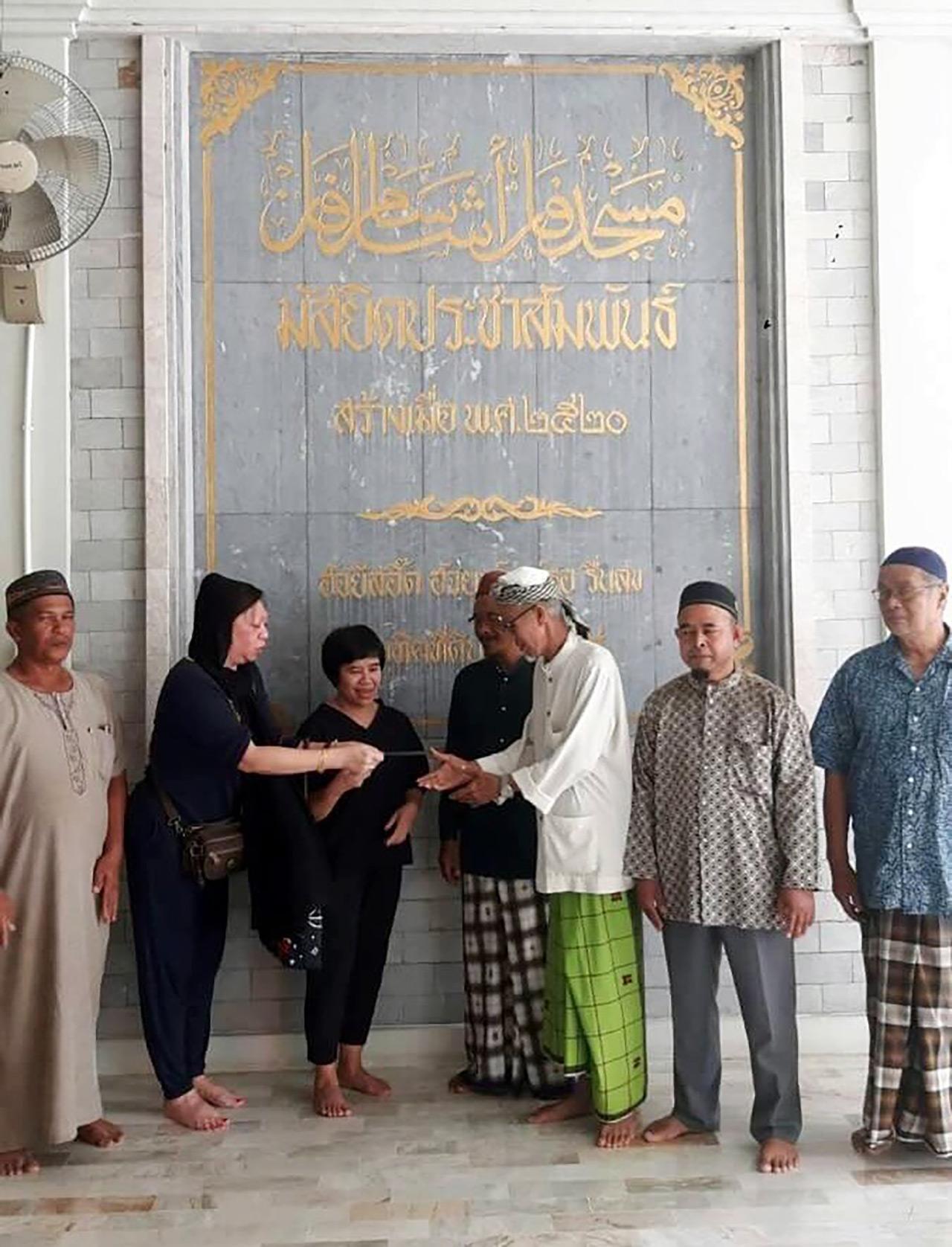 เริ่มด้วยการทำพิธีกรรมทางศาสนาอิสลาม ตามแบบที่คุณพ่ออาโนลนับถือ และร่วมเป็นเจ้าภาพเลี้ยงอาหารเย็น รวมถึงบริจาคโต๊ะประชุม, ชุดเก้าอี้ม้าหิน, ข้าวของเครื่องใช้ที่จำเป็น ให้กับมัสยิดประชาสัมพันธ์ หมู่ 6 ตำบลบึงคอไห อำเภอลำลูกกา จังหวัดปทุมธานี