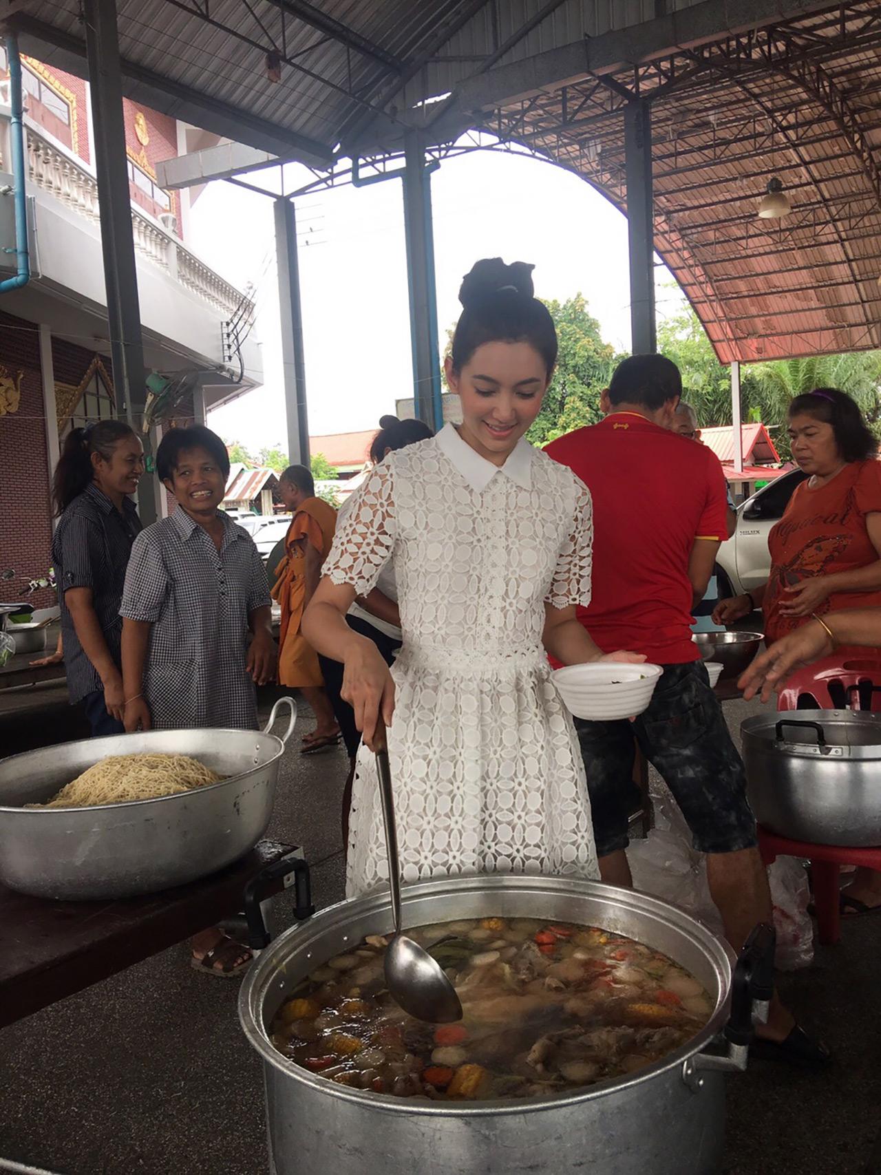 และก็ทำบุญตามพระพุทธศาสนาที่เบลกับคุณแม่นับถือด้วย ถ้ามีเวลาเราสองแม่ลูกก็จะพากันเข้าวัดค่ะ ไปไหว้พระ ใส่บาตร เลี้ยงเพลพระภิกษุ ถวายสังฆทาน หรือทำโรงทาน แล้วแต่โอกาสค่ะ”.