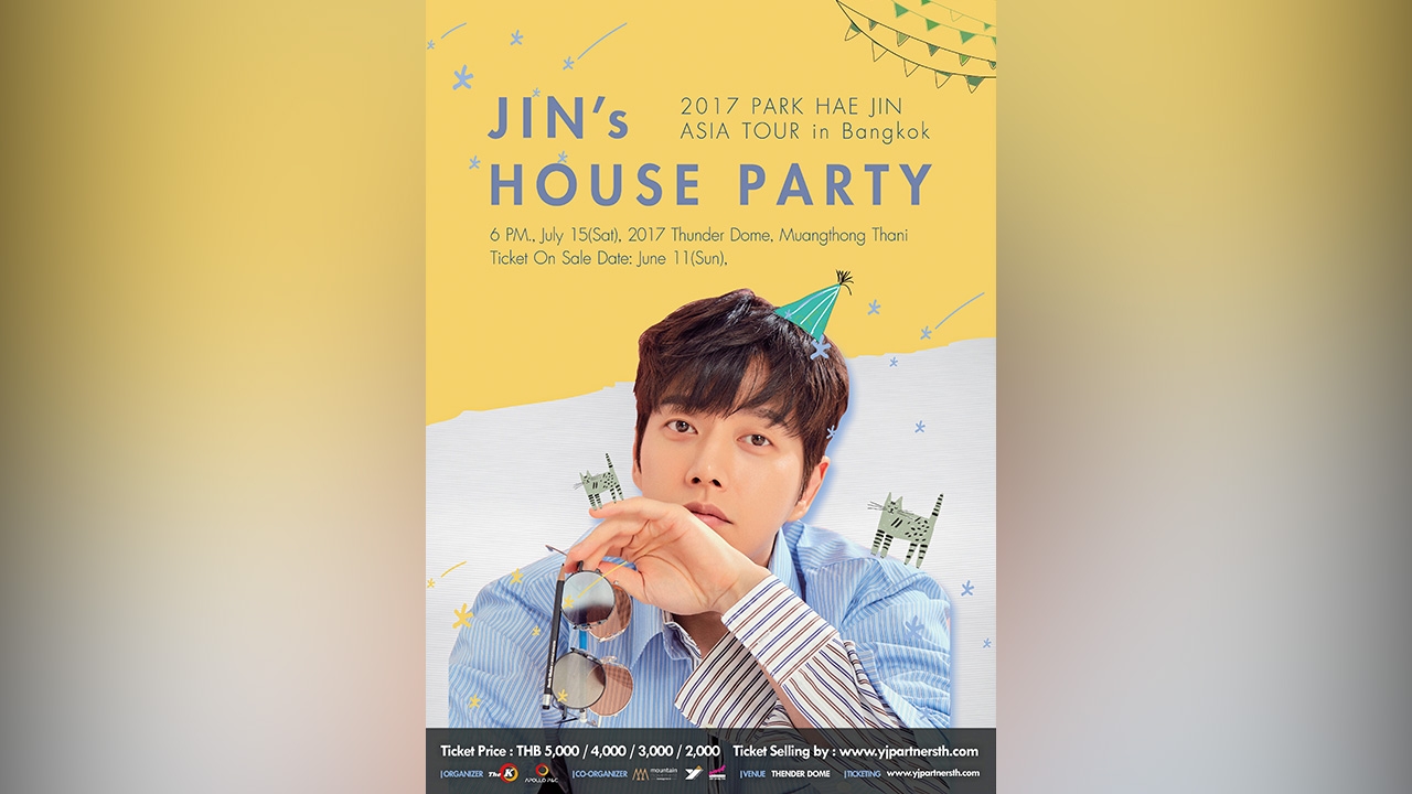 ขโมยหัวใจสาวไทยไปเมื่อปีที่แล้ว พระเอกสุดหล่อ “พัคแฮจิน” (Park HaeJin) โด่งดังจากซีรีส์ดัง “You who came from the Stars” และ “Cheese in the Trap” ที่กำลังฮอตซีรีส์สุดมันส์ “ManxMan” (Man to Man) ในบทบอดี้การ์ดสุดเท่พาให้แฟนคลับสาวไทยเฝ้าคิดถึงและรอคอยการกลับมา ผู้จัดหน้าใหม่ไฟแรงอย่าง YJPartnerTH เลยรีบคว้าตัวหนุ่ม พัคแฮจิน มาให้แฟนๆชาวไทยได้ฟินในแฟนมีตติ้ง 2017 PARK HAE JIN ASIA TOUR in Bangkok ‘JIN’s HOUSE PARTY’ จัดขึ้นในวันเสาร์ที่ 15 ก.ค.นี้ ที่ธันเดอร์โดม เมืองทองธานี เตรียมรู้จักผู้ชายคนนี้ในอีกแง่มุมที่ไม่เคยเห็นกับบรรยากาศสุดเอ็กซ์คลูซีฟ ใกล้ชิดประหนึ่งว่าคุณกำลังอยู่ในปาร์ตี้ส่วนตัว เปิดจองบัตร วันอาทิตย์ที่ 11 มิ.ย.นี้ 10.00 น. เป็นต้นไป ทางเว็บไซต์ www.yjpartnersth.com