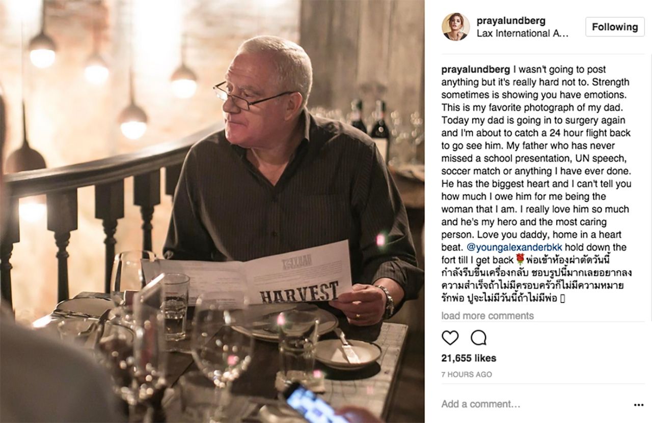“ปูไม่ค่อยได้โพสต์อะไรแบบนี้เท่าไร มันไม่ง่ายเลยที่บางครั้งเราต้องทำตัวว่าเราเข้มแข็ง นี่คือภาพถ่ายของพ่อที่ปูชอบที่สุด วันนี้พ่อต้องเข้ารับการผ่าตัดอีกครั้ง และปูกำลังหาเที่ยวบินเพื่อจะกลับไปพ่อให้ได้ภายในวันนี้