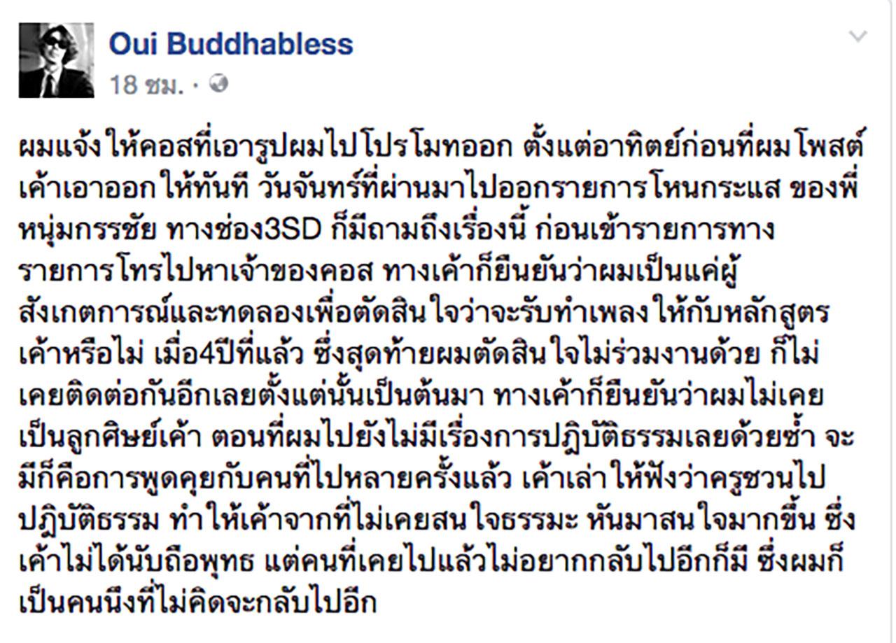 และนอกจากจะเขียนอธิบายแล้ว นักร้องหนุ่มยังได้ไลฟ์สดอธิบายถึงเรื่องนี้ในเฟซบุ๊กส่วนตัวอีกด้วย.