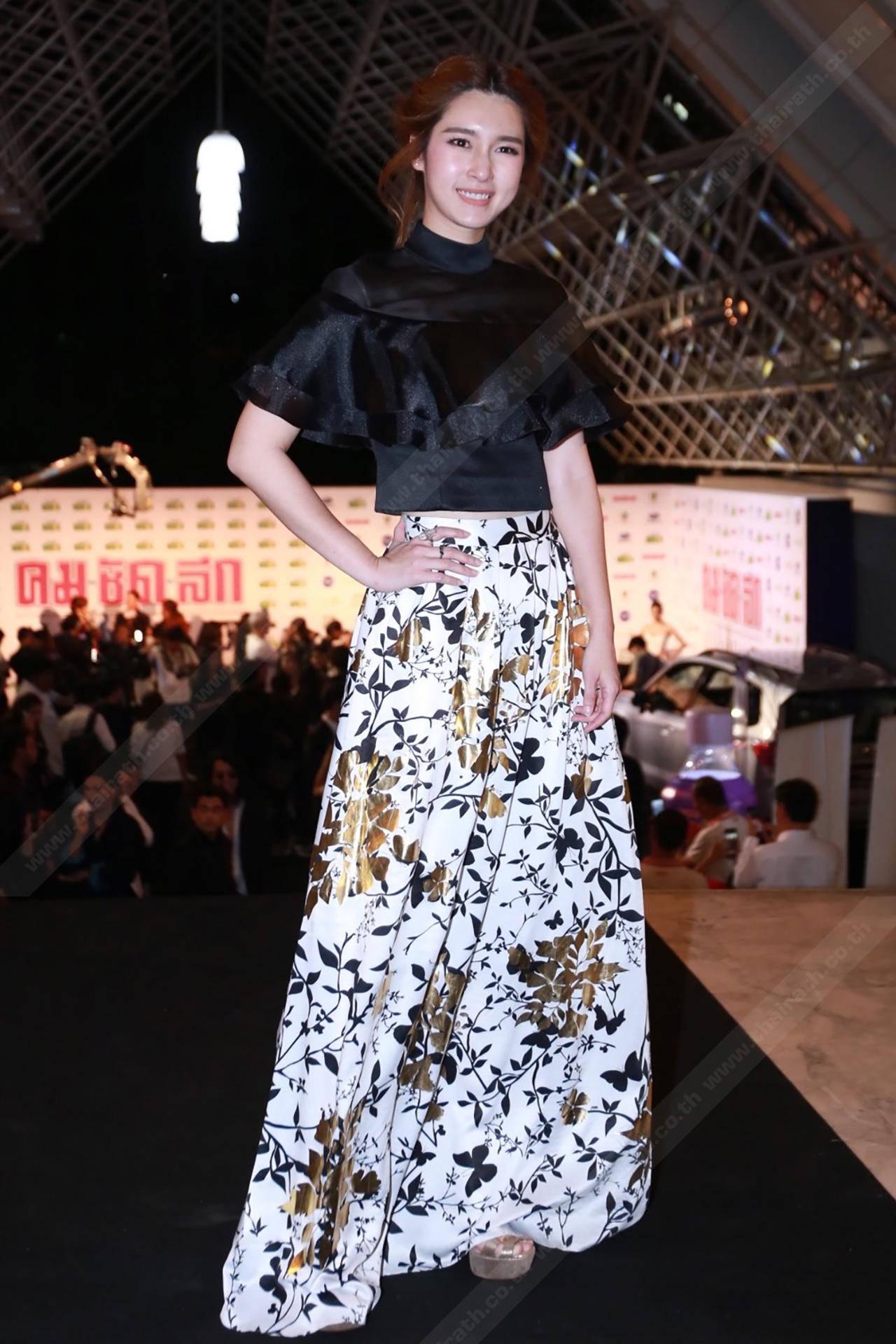 มาพร้อมกับชุดราตรีสีขาวดำ ที่แหวกช่วงขาสูงถึงสะโพก แอบเซ็กซี่เล็กๆ
