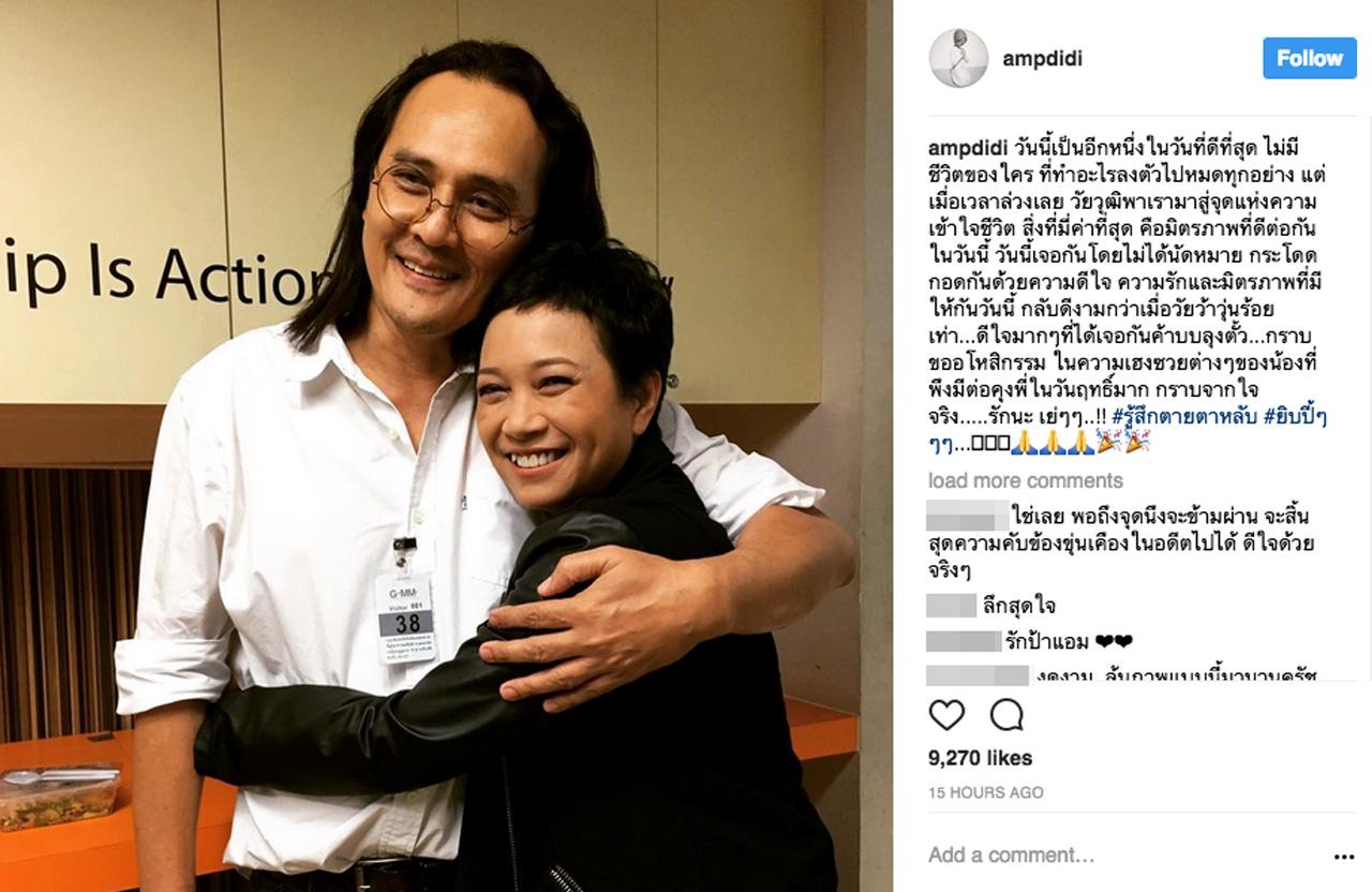 และหลังจากที่เมื่อวาน พี่ฉอด สายทิพย์ ได้ลงรูปของตั้วและแอมกอดกันลงในอินสตาแกรมไปไม่นาน นักร้องสาวก็ได้นำภาพดังกล่าวมาลงอีกครั้ง พร้อมเปิดใจถึงความรู้สึกที่ไม่เคยบอกใครว่า