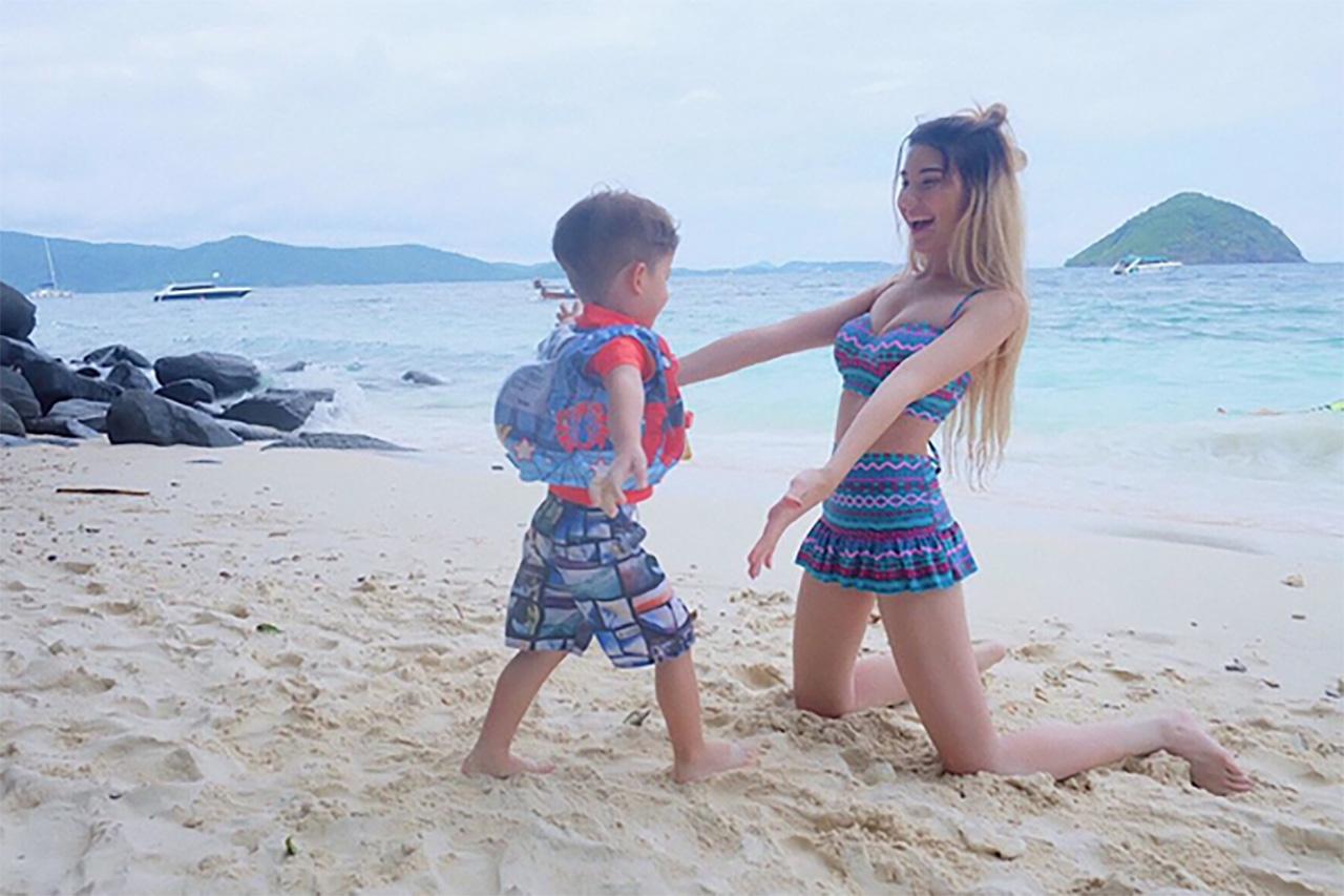 แล้วก็ไลน์ไปบอกไมค์ เค้าก็วิดีโอคอลมา ก็ร้องไห้ไปด้วยกันเลย เพราะว่าทั้งหมดคือลูกของเรา ก็เลยร้องไห้ด้วยกัน คือเราคุยกันได้แค่เรื่องลูกค่ะ แต่เรื่องส่วนตัวเราจะไม่ยุ่งกัน เราอยากให้เค้ามีส่วนรับรู้ในเรื่องของลูก เพราะตัวเค้าไม่ค่อยได้มาเจอลูก เราก็จะคอยอัพเดต เค้าจะทักมาทุกวัน ขอวิดีโอหน่อย พี่แม็กซ์เป็นไงบ้าง เค้าก็จะคอยถามอยู่เรื่อยๆ เค้าก็ต้องรักลูกแหละค่ะ”