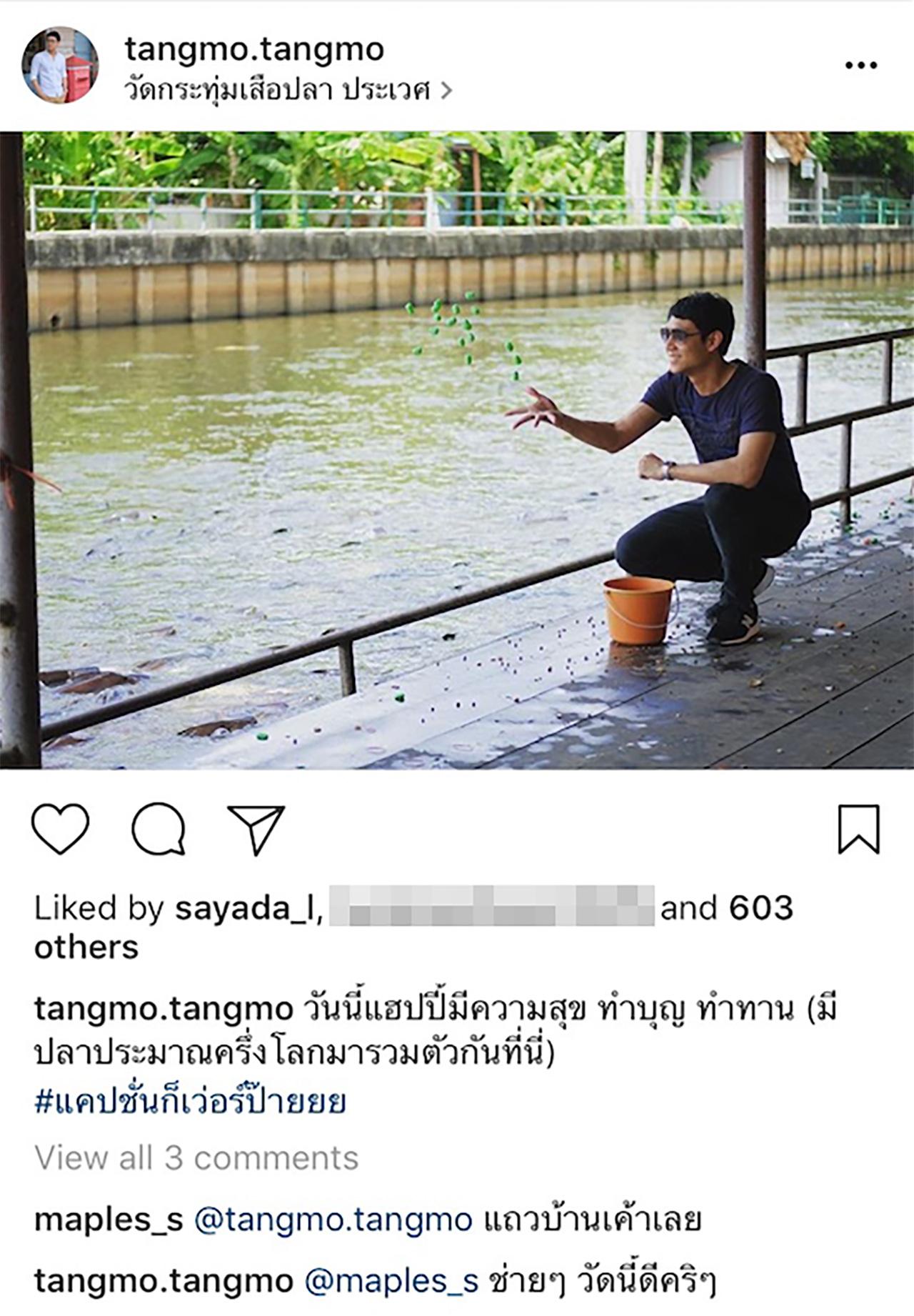 โดยล่าสุดทั้งคู่ได้ควงกันไปทำบุญปล่อยปลาที่วัด ถึงแม้จะไม่ได้ลงรูปคู่กัน แต่งานนี้ฝ่ายหญิงก็ได้แท็กชื่อหนุ่มแตงโมในแคปชั่นของตัวเองอีกด้วย