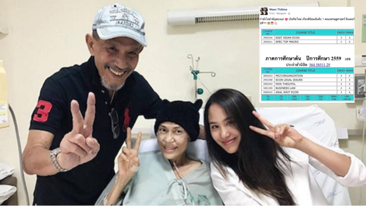 แม้จะป่วยหนักด้วยโรคมะเร็งกระดูก แต่แหวน ฐิติมา สุตสุนทร ยังมีกำลังใจดีเยี่ยมจากคนในครอบครัว ล่าสุดนักร้องร็อกเกอร์ในตำนาน โพสต์ภาพผลการเรียนของน้อง ปันปัน เต็มฟ้า กฤษณายุธ ลูกสาวคนเดียว โดยมีผลการเรียนดีมากจนสามารถคว้าเกียรตินิยมอันดับ 1 จากคณะเศรษฐศาสตร์ อินเตอร์ จุฬาลงกรณ์มหาวิทยาลัยมาครอบครองได้สำเร็จ