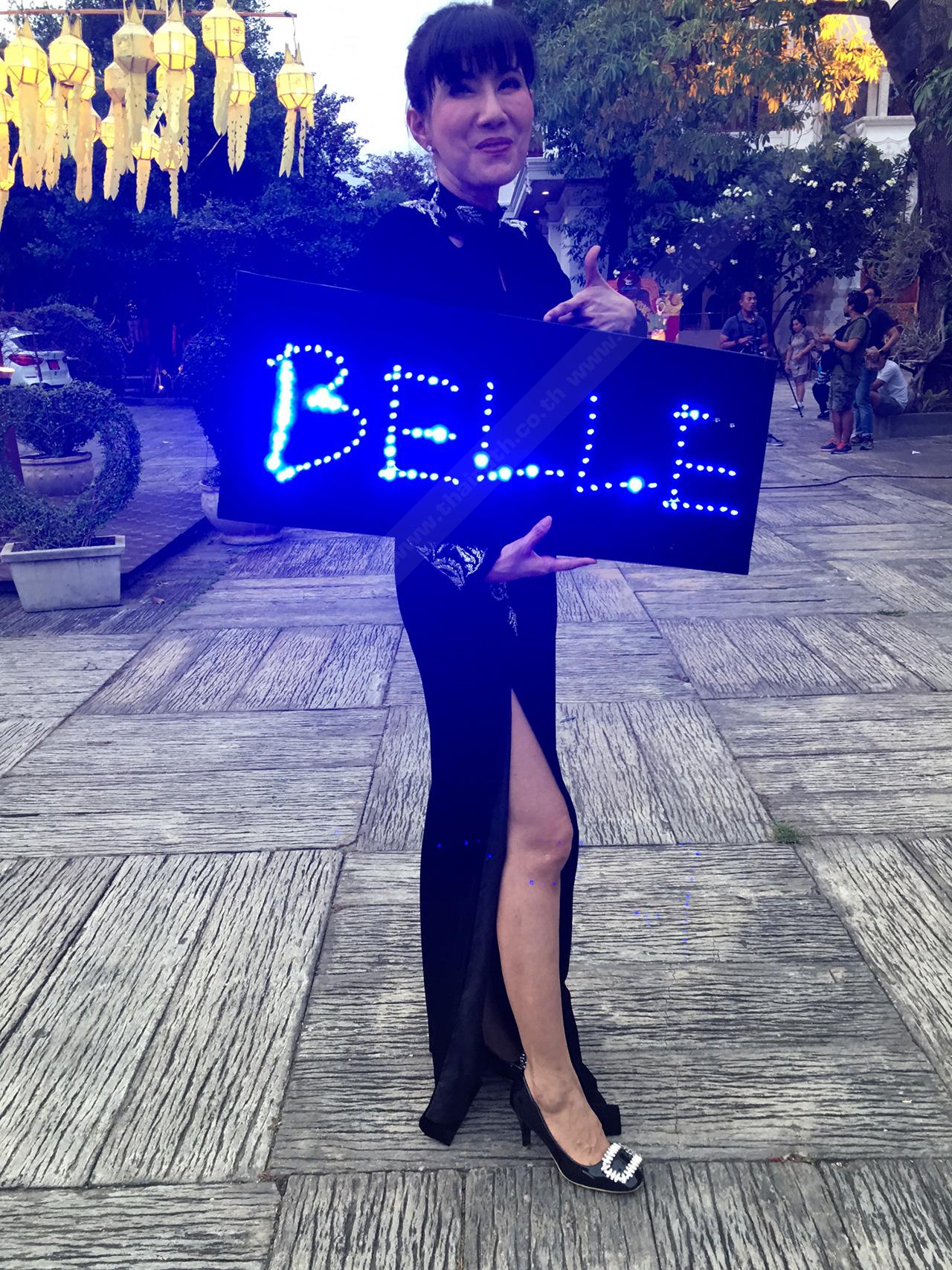 ค่ายหนัง ละคร ติดต่อน้องเบลล์มาแล้ว? "พี่ไม่ทราบเหมือนกัน พี่ไม่ได้สนใจเรื่องพวกนี้เลย คือสนใจเป็นเรื่องๆ ไป ไม่สามารถจะสนใจหลายๆ เรื่องในเวลาเดียวกันได้ เพราะแค่นี้พี่ก็เหนื่อยแล้ว เป็นทั้งแม่ ทั้งพี่เลี้ยง คนถือกระเป๋า เป็นทั้งคนขับรถ เป็นทั้งหมอ พยาบาล เป็นแจ๋ว (หัวเราะ) เดือนนี้พี่ของดรับงาน มาเป็นแจ๋วให้ลูกสาว (ยิ้ม) เพราะลูกไม่ได้รู้อะไรเลยนะในวงการนางงาม แล้วแม่ก็ไม่ใช่ว่าจะรู้อะไรด้วยนะ ก็ต้องถามชาวบ้านเขาเหมือนกัน พี่ไม่รู้เรื่องเลย นับ 1 ใหม่หมดเลย ทุกอย่างต้องรับรู้ใหม่ ได้คำบอกกล่าวมาจากคนอื่น โชคดีมีเพื่อนฝูงเยอะ อาจจะทันการณ์บ้าง ไม่ทันการณ์บ้างก็ต้องปล่อยไป อาจป้ายไฟต้องมีด้วยเหรอ อ๊ะ มีก็มี ฮัลโหลๆๆๆ ต้องมีด้วยเหรอ หาให้ด้วย (หัวเราะ)"