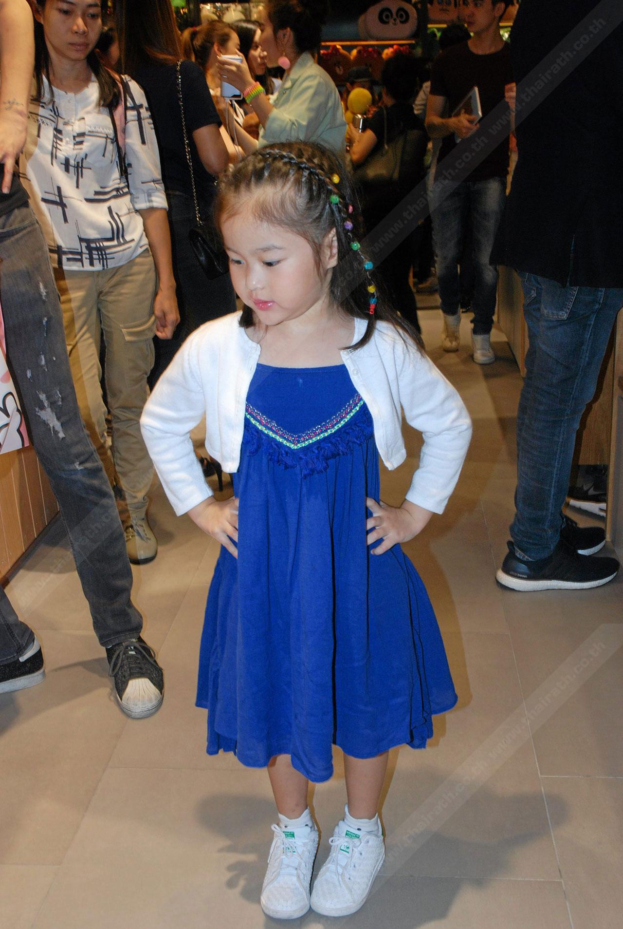 แอบห่วงลูกสาวตัวเองอยู่? "(รีบพูดไวๆ) ห่วงมาก บอกเลยห่วงมาก เขาอยากเล่นด้วย เขาขอเราด้วย ถ้าเราไม่ให้ ก็ไปอ้อนลุงโน่ (นีโน่ เมทนี บุรณศิริ) ซึ่งลุงก็ใจดีหลานสาวมาขอ เราก็ห่วงๆ เรื่องเรียนด้วย แต่ว่าบทก็ไม่มีอะไร ใสๆ กิ๊งก่องแก้วไปค่ะ แต่ก็บอกทางกองว่า ถ้าจะมีคิวถ่ายน้องก็ให้เป็นวันเสาร์ อาทิตย์แล้วกัน ก็ตั้งใจให้เขาได้ลองจะได้รู้และได้จบสักที ไม่ต้องมาขอเราอีก ถ้าชอบเล่นละครก็ชอบแล้วนะ ให้ได้ลองแล้ว แต่ถ้าไม่ชอบก็ดีไปอะไรงี้"