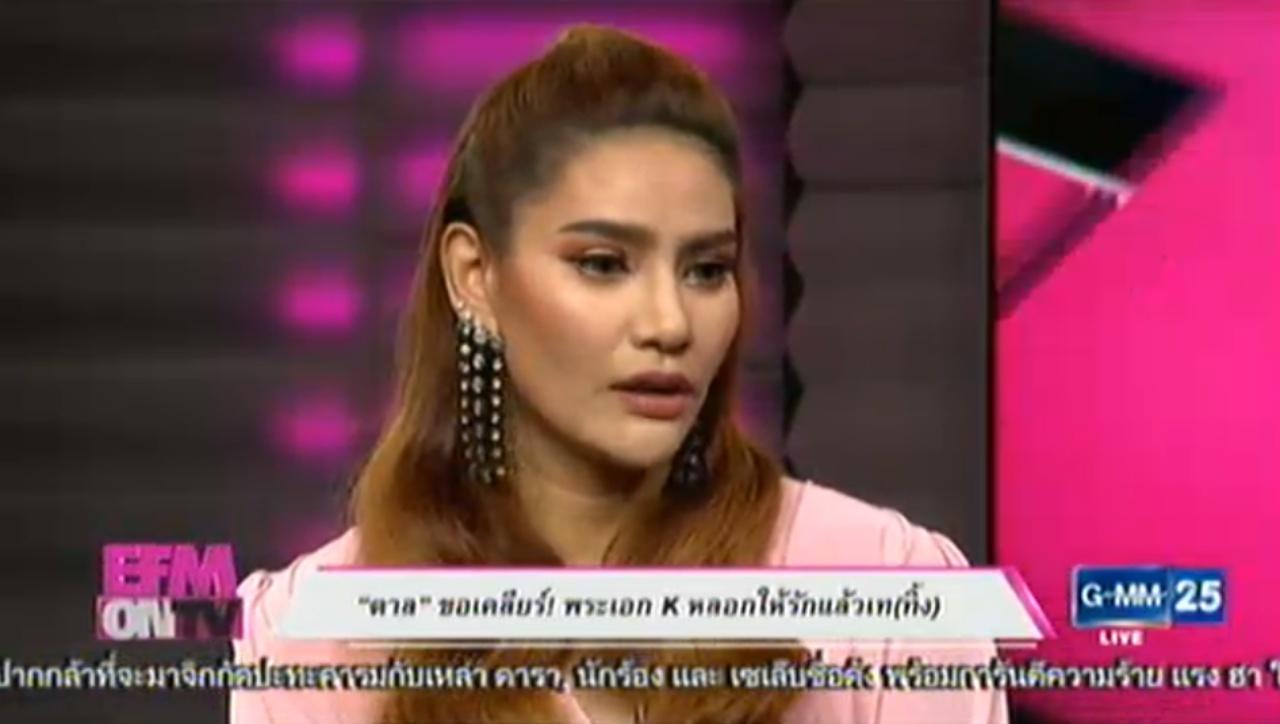 EFM ออนทีวี “จริงๆ แล้วทางรายการที่โทรไป เราติดตามรายการนี้อยู่แล้วชอบเพราะว่าทางพี่ๆ ให้คำแนะนำที่ดี เราอยากโทรไปปรึกษา ไม่คิดว่าจะมีคนรู้” ไม่เห็นต้องบอกว่าเขาเป็นพระเอกเลย “เพราะว่าด้วยความที่เราอยากรู้ความคิดของพี่ๆ ที่เขาอยู่ในวงการ พี่ๆ เขาน่าจะให้คำแนะนำที่ตรงประเด็นกว่า” ทำไมเลือกโทรไปวันที่มีพี่หอย เพราะเราเคยมีข่าวกับพี่หอย “ไม่รู้ว่าพี่เขาจะจัด แล้วตาลก็ไม่เคยคบกับพี่เขานะคะ”