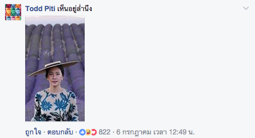 ต๊อด ปิติ แซวศรีภรรยา นุ่น วรนุช หลังจากที่ฝ่ายหญิง โพสต์ข้อความถามเรื่อง UFO จากผู้รู้ โดยเจ้าตัวบอกว่าเจอจานบินลำนึง พร้อมโพสต์รูปนุ่นใส่หมวกปีกใหญ่ถ่ายรูปกับทุ่งดอกลาเวนเดอร์