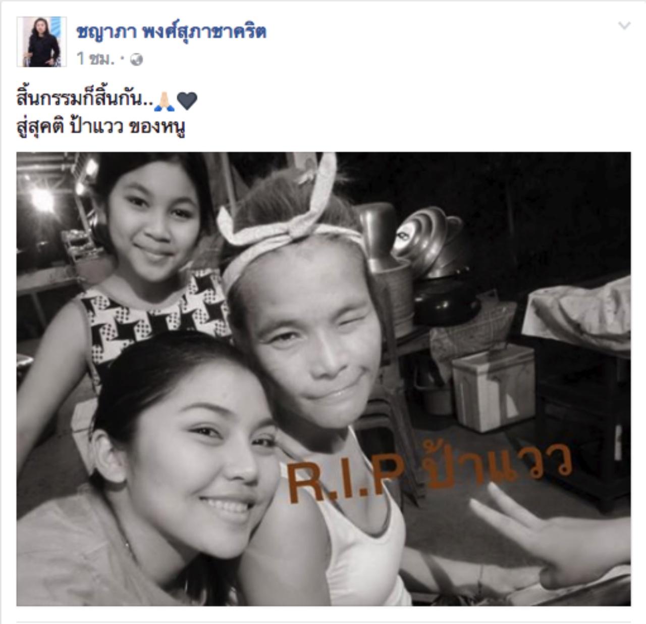 โดยในเฟซบุ๊กของ บูม ชญาภา พงศ์สุภาชาคริต ลูกของ ชูษี เชิญยิ้ม และนก วนิดา ก็ได้โพสต์รูปพร้อมข้อความว่า "สิ้นกรรมก็สิ้นกัน สู่สุคติ ป้าแววของหนู" จากนั้นก็มีผู้เข้ามาแสดงความเสียใจกันอย่างมากมาย
