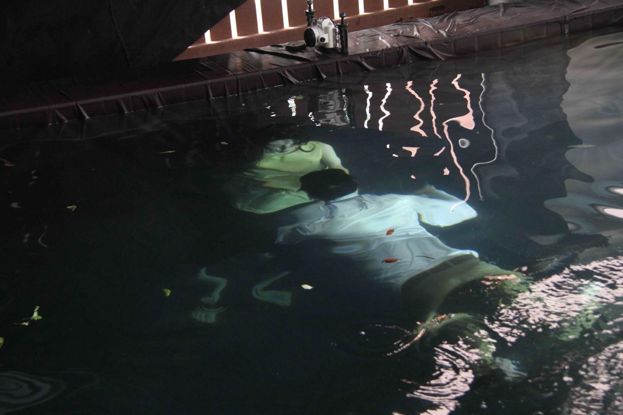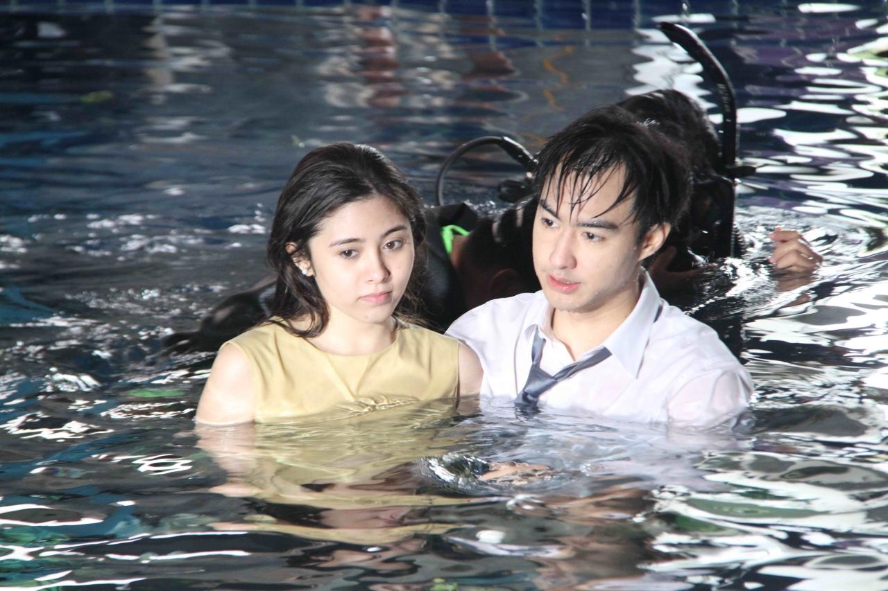 ต้องแบ่งถ่าย 2 วัน ในซีนจริงคือถ่ายที่บ้านเรือนไม้ชายน้ำ สามโคก ที่บรรยากาศโศกเศร้าเสียเหลือเกิน วินนี่สุดสลด สงสัยหมดแรงต้องอุ้มมิลลี่หลายเทค แต่พออีกวันมาถ่ายใต้น้ำ ที่สคูบา บรมราชชนนี บรรยากาศกลับครื้นเครงน่าดู คงเพราะจะได้เล่นน้ำกัน ฝั่งมิลลี่แอบไปนั่งกอดน้ำร้อนตัวสั่นอยู่ ก็แช่น้ำเกือบครึ่งค่อนวันนี่นา ด้านวินถือว่าไม่เสียชื่อ เจ้าพ่อนักดำน้ำ เพราะงานนี้เล่นเองตลอดไม่ใช้ตัวแสดงแทน ดำน้ำไปช่วยมิลลี่แบบผ่านฉลุย จะเอากี่คัทว่ามา พ่อจัดให้ได้ครบเลยจ้า