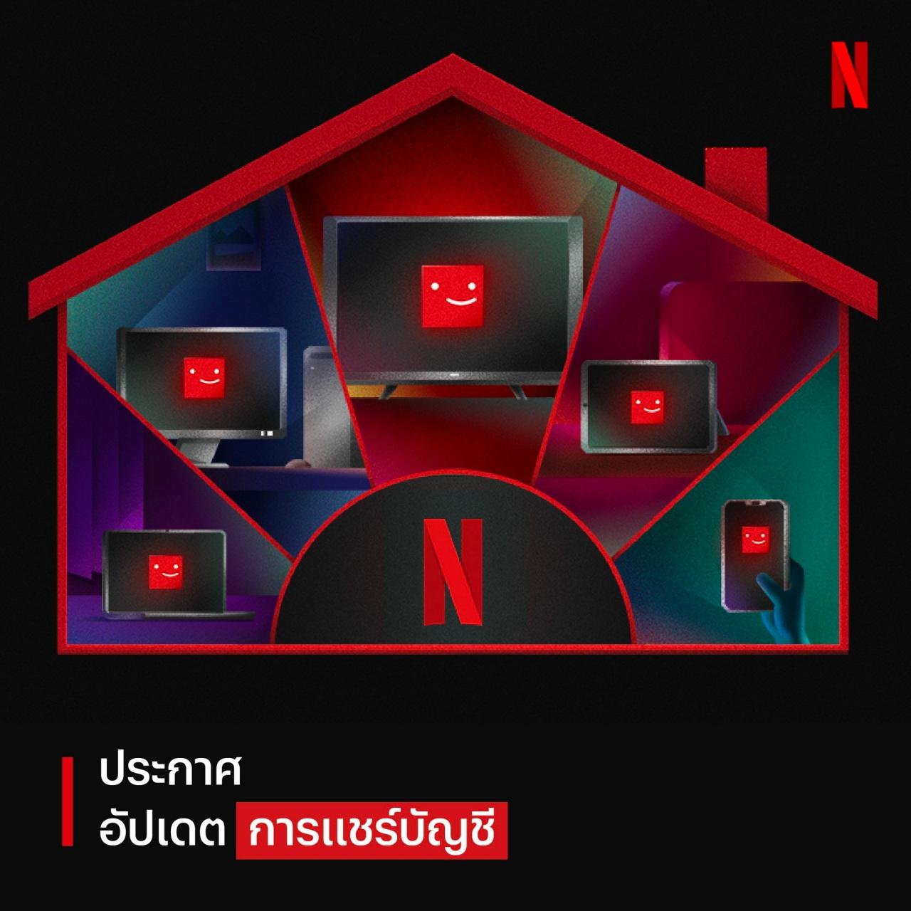 "บัญชี Netflix มีไว้สำหรับคุณเอง และสำหรับแชร์กับผู้ที่อยู่อาศัยในครัวเรือนเดียวกัน โดยเราจะมีฟีเจอร์ใหม่ที่จะทำให้สมาชิก Netflix ในประเทศไทย สามารถจัดการการเข้าถึงบัญชี Netflix ได้สะดวกยิ่งขึ้น และยังสามารถรับชม หนัง / ซีรีส์ ระหว่างเดินทางท่องเที่ยวได้ง่ายๆ"