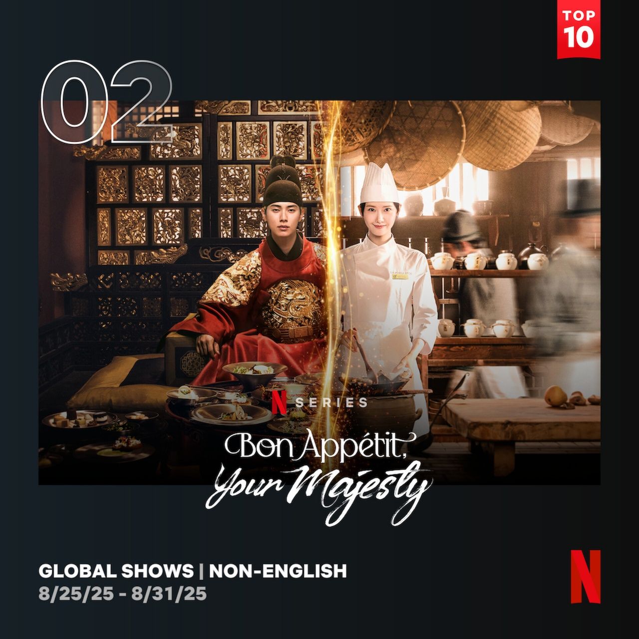 กำลังมาแรงเลยทีเดียว สำหรับซีรีส์เกาหลีเรื่อง "เมนูรักพิชิตใจราชา (Bon Appétit, Your Majesty)" ที่ล่าสุดปล่อยภาพโปสเตอร์พิเศษอวดเคมีเกินต้านของ “อิมยุนอา” และ “อีแชมิน” หลังขึ้นครองอันดับ 2 ซีรีส์ภาษาต่างประเทศ (Non-English) ที่มียอดรับชมสูงสุดทั่วโลกบน Netflix หลังจากเริ่มสตรีมได้เพียงสองสัปดาห์ ด้วยสถิติการรับชมสูงถึง 8.1 ล้านวิว และยังติดอันดับ Top 10 ใน 73 ประเทศ นับเป็นอีกครั้งที่ซีรีส์เกาหลีจาก Netflix ครองใจผู้ชมไปทั่วโลก