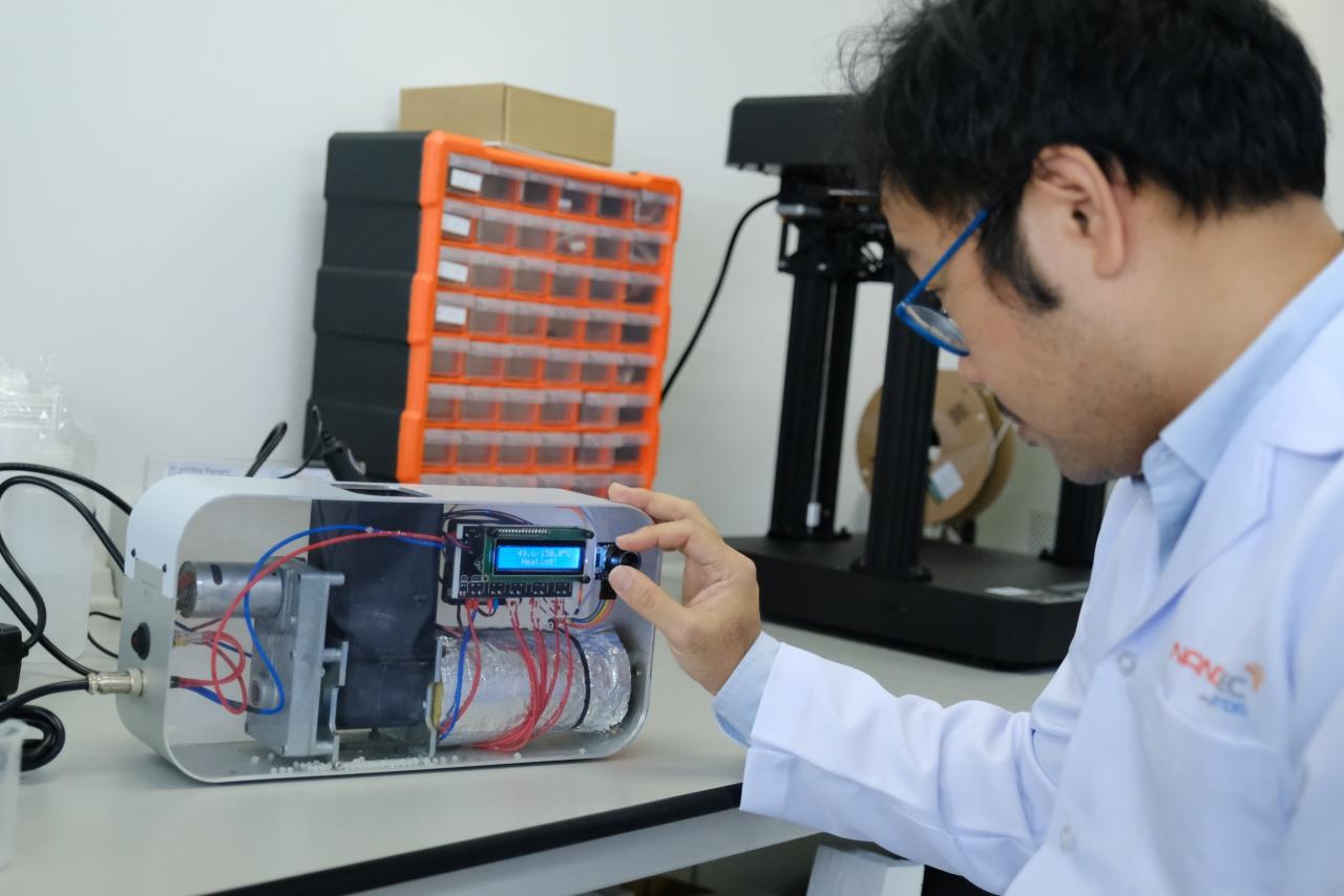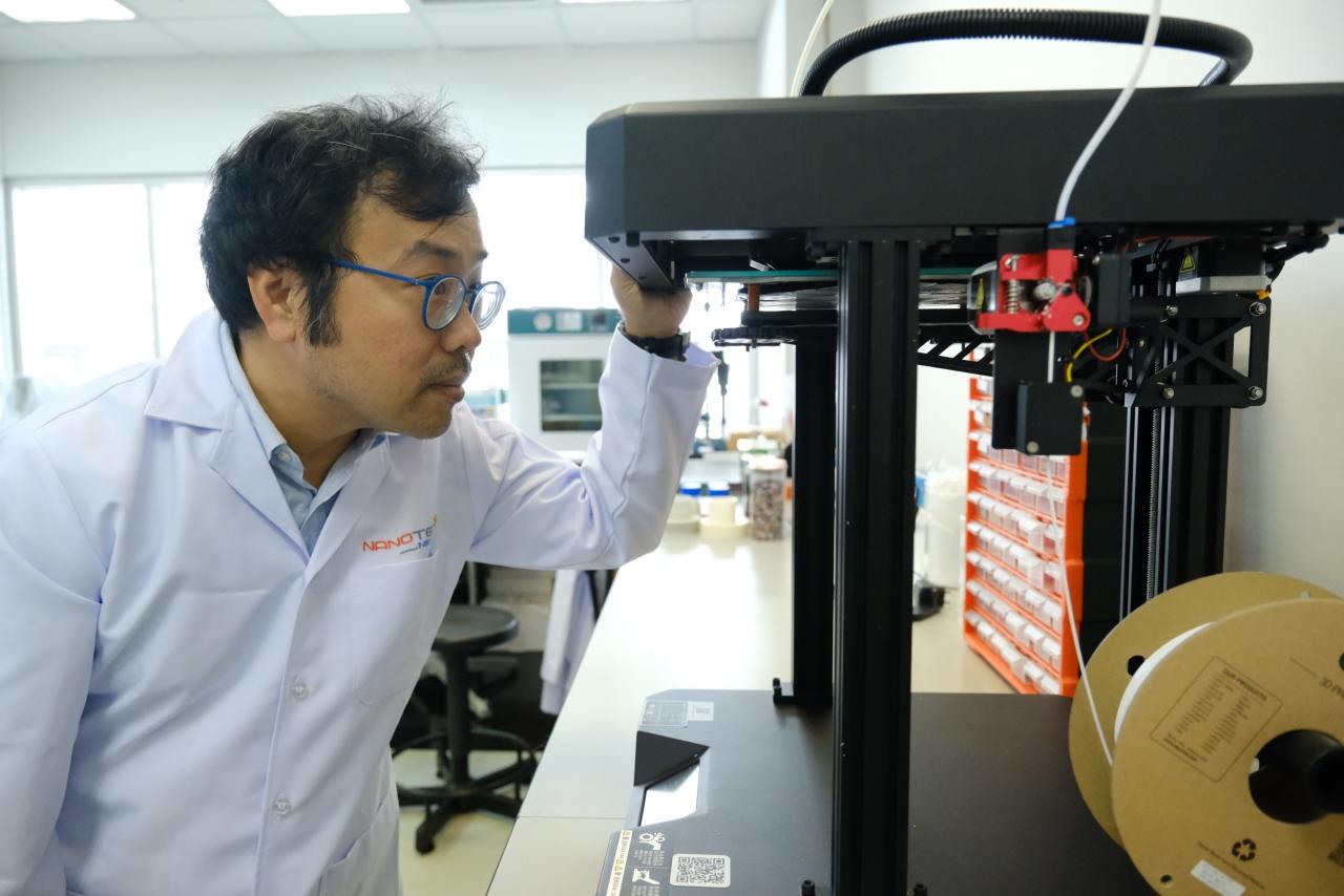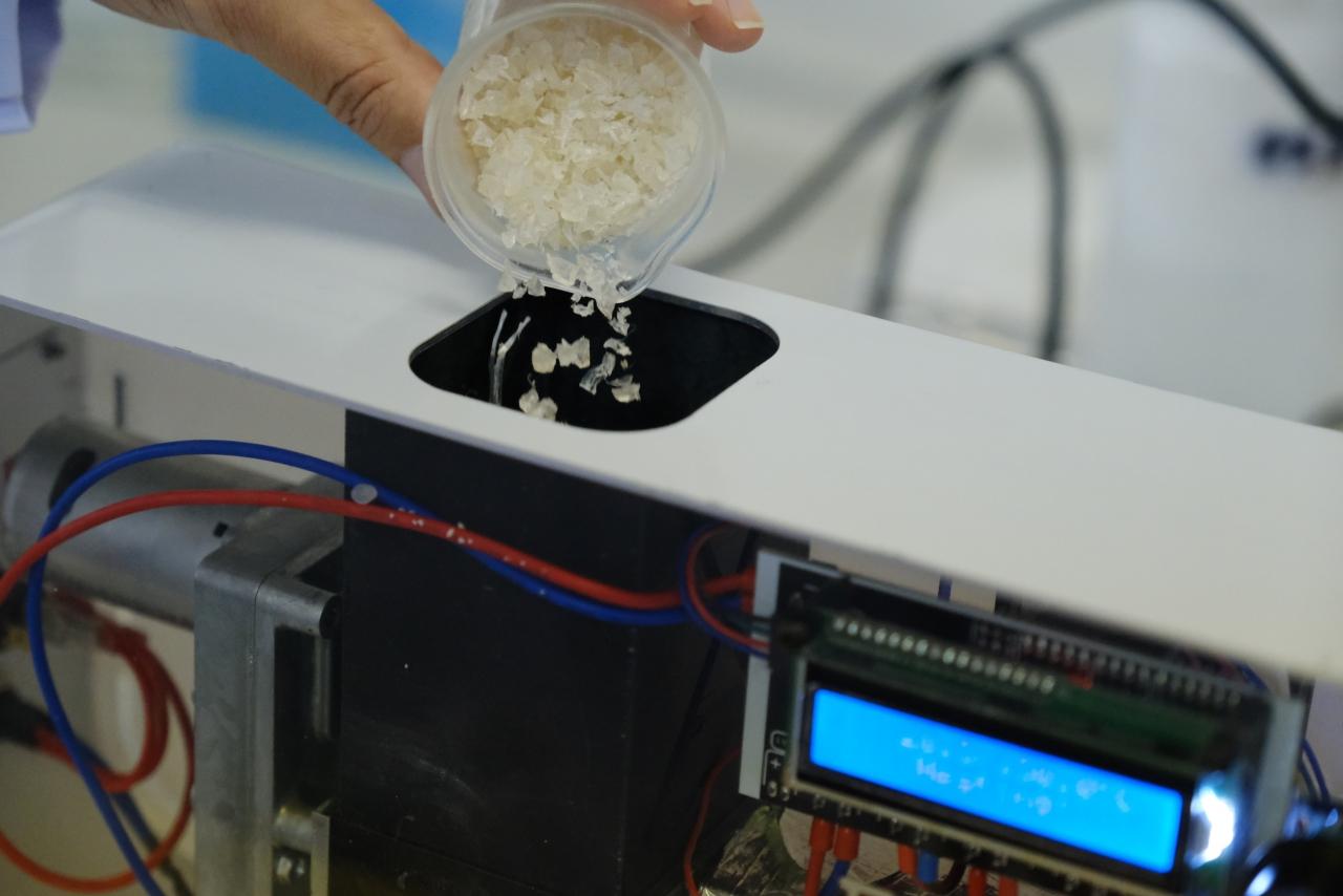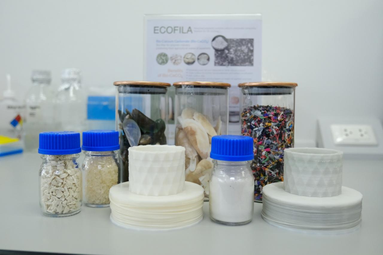 "เราได้ทดลองนำขยะพลาสติกชีวภาพ หรือ Recycled PLA จากกระบวนการพิมพ์สามมิติมาใช้ โดยบดผสมกับไบโอแคลเซียมคาร์บอเนตจากเปลือกหอยแมลงภู่ แล้วฉีดขึ้นรูปเป็นเส้นพลาสติกสำหรับเครื่องพิมพ์สามมิติ โดย Re-ECOFILA หรือเส้นพลาสติกที่ผลิตได้มีคุณภาพเทียบเท่ากับเส้นพลาสติกที่มีจำหน่ายเชิงพาณิชย์ สามารถใช้งานได้กับเครื่องพิมพ์สามมิติระบบ FDM ได้ทันที อาจจะมีข้อจำกัดเรื่องสีของเส้นพลาสติกที่แตกต่างจากของทั่วไป แต่ก็เป็นอีกหนึ่งโอกาสทางการตลาด ด้วยข้อมูลจาก HSSMI ซึ่งเป็นบริษัทให้คำปรึกษาด้านการผลิตด้วยกระบวนการที่ยั่งยืน พบว่า มีการใช้เครื่องพิมพ์สามมิติชนิด FDM ที่ต้องใช้เส้นพลาสติกโดยเฉพาะเส้นพลาสติกผลิตจาก PLA ถึง 66% ของจำนวนเครื่องพิมพ์สามมิติทั่วโลก"