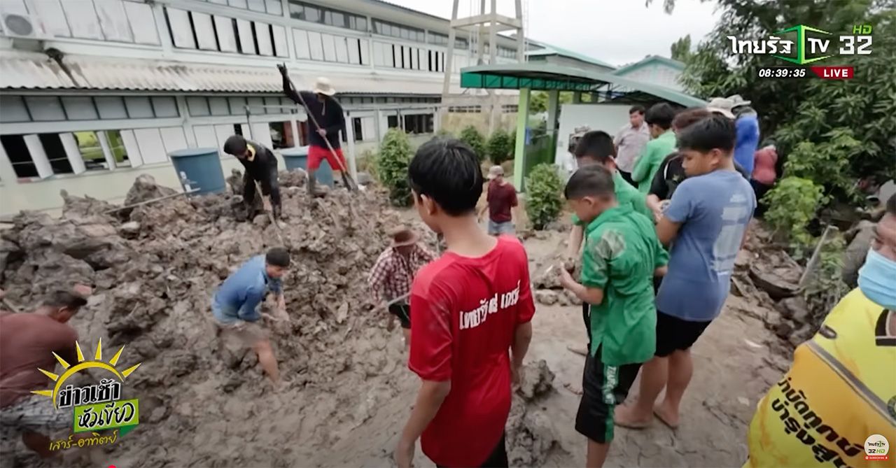ชาวบ้านทั้งชายและหญิงในชุมชนบางระกำ อ.บางเลน จ.นครปฐม ได้ร่วมแรงร่วมใจขนดินโคลน เพื่อนำไปสร้างคันดิน เพื่อเป็นกำแพงป้องกันน้ำท่วม เนื่องจากโรงเรียนตั้งอยู่ริมแม่น้ำ เมื่อถึงเวลาน้ำหลาก น้ำมักจะท่วมทุกปี