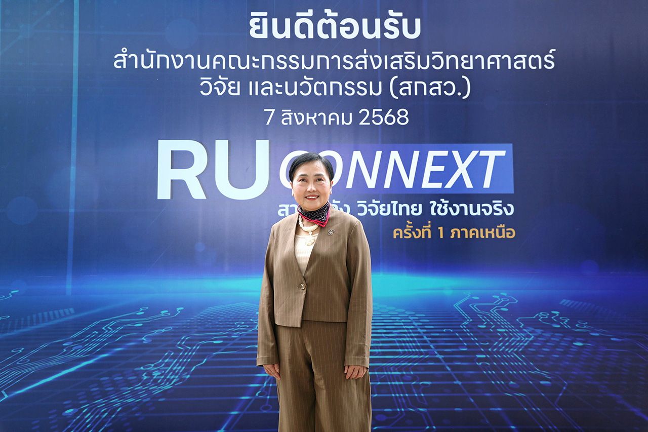 ศ.ดร.วิษณุ เล่าว่า การจัดกิจกรรม “RU CONNEXT : สานพลัง วิจัยไทย ใช้งานจริง” จัดขึ้นเป็นครั้งแรกในภาคเหนือ โดยมีมหาวิทยาลัยกว่า 30 แห่งเข้าร่วม นำผลงานเด่นๆลงสู่ชุมชนจริง เช่น โรงงานต้นแบบสารสกัดสมุนไพร ศูนย์นวัตกรรมสมุนไพร ระบบตรวจวัด PM แบบเรียลไทม์ และนวัตกรรมจัดการน้ำเสีย นี่คือตัวอย่างที่งานวิจัยไม่ได้หยุดอยู่บนหิ้ง แต่มาถึงเศรษฐกิจท้องถิ่นและคุณภาพชีวิตของประชาชนโดยตรง