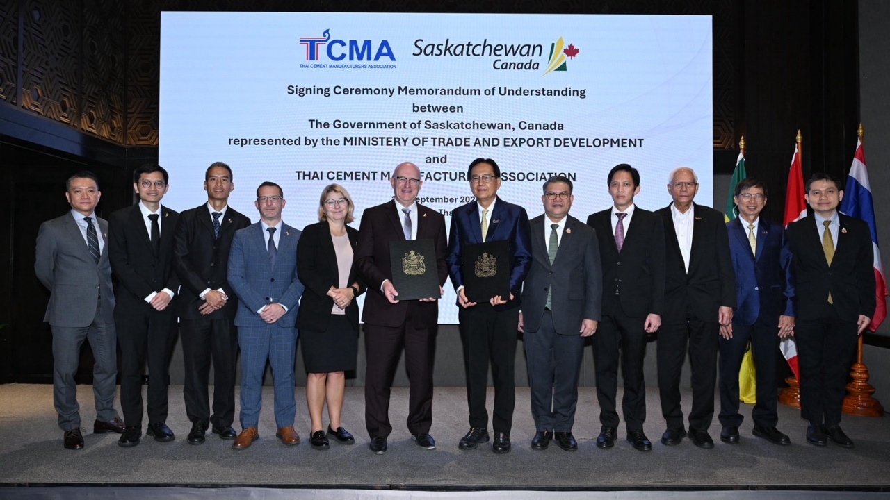 วันที่ 27 ก.ย. 68 สมาคมอุตสาหกรรมปูนซีเมนต์ไทย (TCMA) และรัฐซัสแคตเชวัน (Saskatchewan) ประเทศแคนาดา โดยกระทรวงการค้าและพัฒนาการส่งออก (Ministry of Trade and Export Development) ร่วมลงนามบันทึกความเข้าใจ (MOU) เพื่อกระชับความสัมพันธ์และเสริมสร้างความร่วมมือพัฒนาอุตสาหกรรมที่ยั่งยืน และสนับสนุนเป้าหมายลดก๊าซเรือนกระจก โดยมุ่งเน้นภาคส่วนที่เกี่ยวข้องกับพลังงาน และเทคโนโลยีขั้นสูงด้านการดักจับ-ใช้ประโยชน์จากคาร์บอน โดยได้รับเกียรติจากอธิบดีกรมการเปลี่ยนแปลงสภาพภูมิอากาศและสิ่งแวดล้อม รองอธิบดีกรมโรงงานอุตสาหกรรม และผู้แทนระดับสูงรัฐซัสแคตเชวัน ร่วมเป็นสักขีพยาน