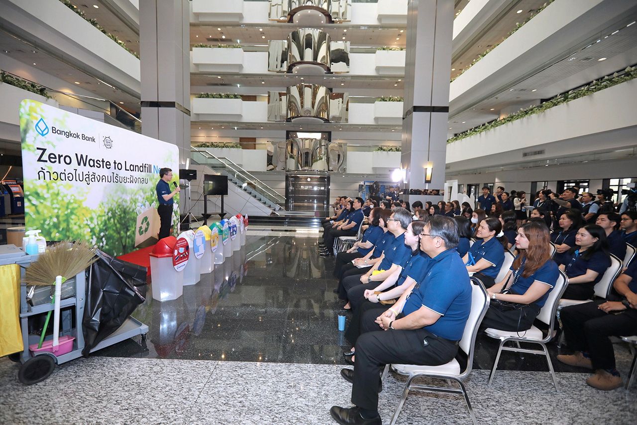 ด้วยกิจกรรม Zero Waste to Landfill Next ก้าวต่อไปสู่สังคมไร้ขยะฝังกลบ เป็นส่วนหนึ่งของโครงการ Bualuang Save the Earth : 3R+ ซึ่งธนาคารเริ่มนำร่องที่อาคารสำนักงานพระราม 3 ตั้งแต่ปี 2567 ครอบคลุมการบริหารจัดการขยะแบบครบวงจร อาทิ การอบรมเชิงปฏิบัติการด้านการคัดแยกขยะให้แก่ทีมแม่บ้านและพนักงานโดยผู้เชี่ยวชาญจากบริษัท อินโดรามา เวนเจอร์ส จำกัด (มหาชน) การใช้ภาชนะย่อยสลายได้ในโรงอาหาร