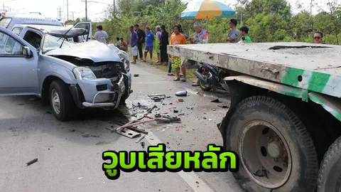 สลด! กระบะวูบ ชนท้าย 10 ล้อ จอดข้างทางเต็มแรง ตาย 1 เจ็บ 2