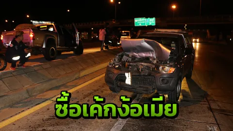 หนุ่มขับกระบะหาซื้อเค้กง้อเมีย พุ่งชนท้ายกระบะติดไฟแดง อ้างมองไม่เห็น