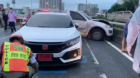 ลิเกดาวร้ายจอดช่วยรถเสียถูกกระบะชน ร่วงคู่ขนานลอยฟ้าบรมราชชนนีตายคาที่